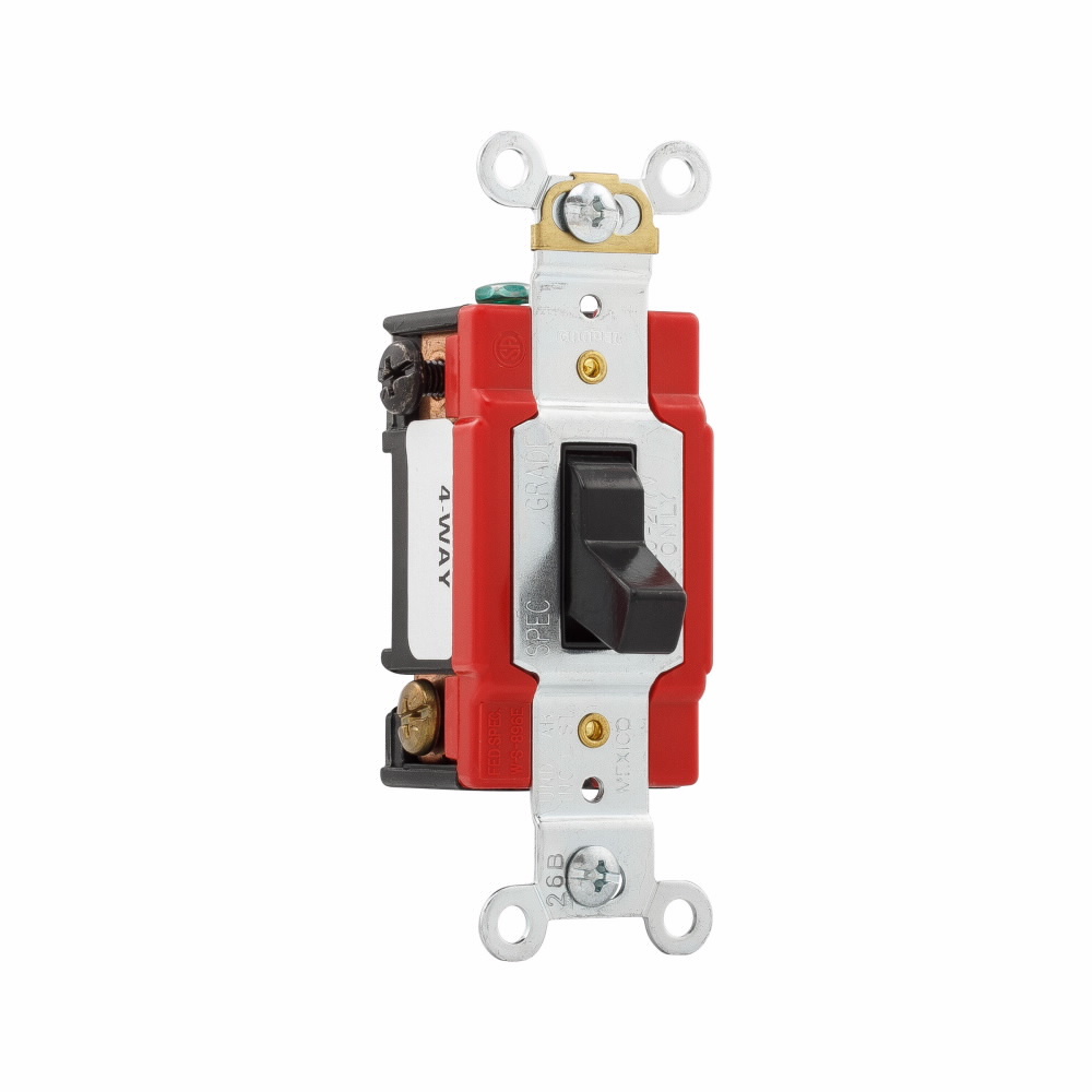 EATON Arrow Hart® AH1224BK AH1220 4-Way Premium Automatic Grounding Toggle Switch, 120/277 VAC, 20 A, 1 hp Power Rating