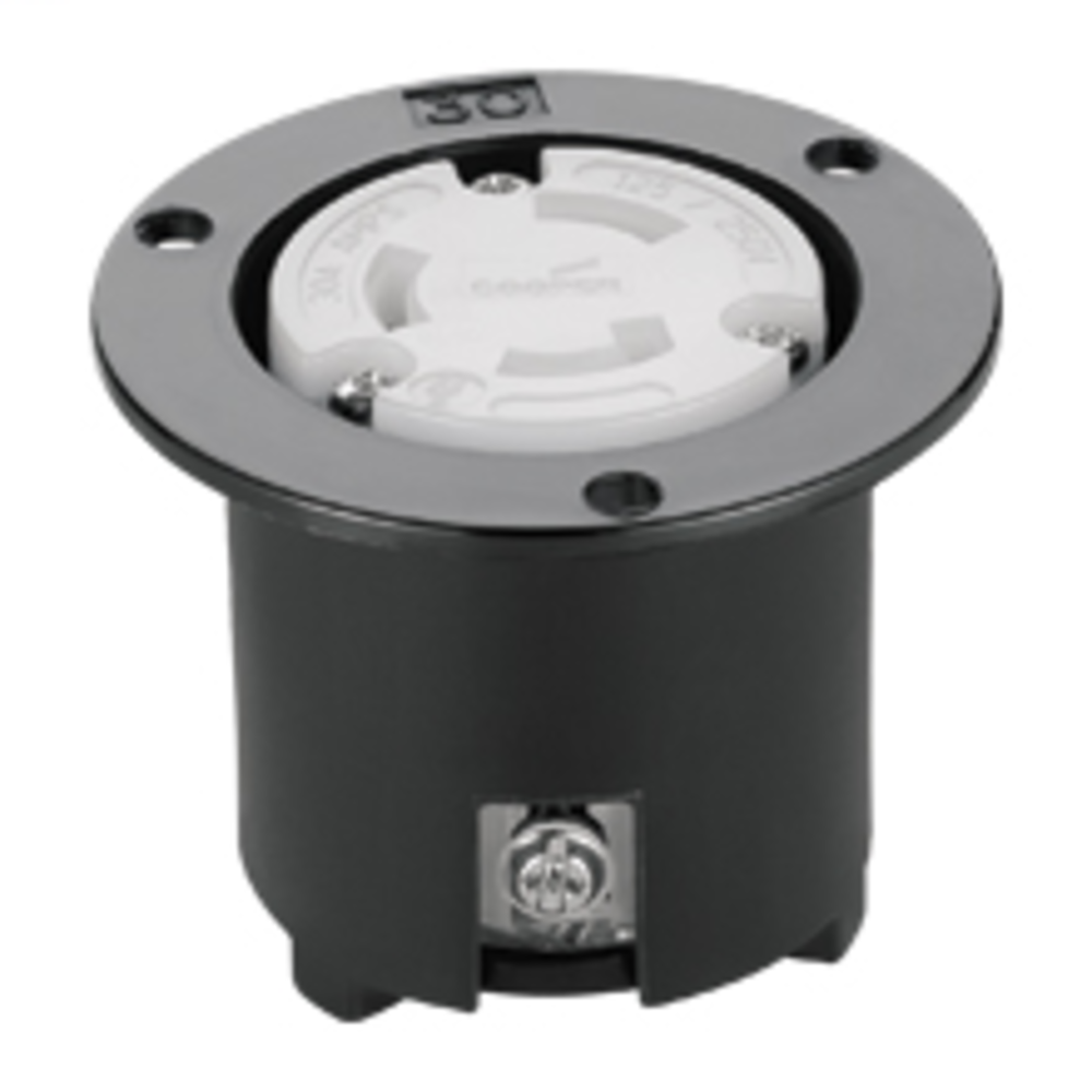 EATON Arrow Hart® Hart-Lock® AH3337N Locking Flanged Inlet, 125/250 V, 30 A, 3 Poles, 3 Wires, Black