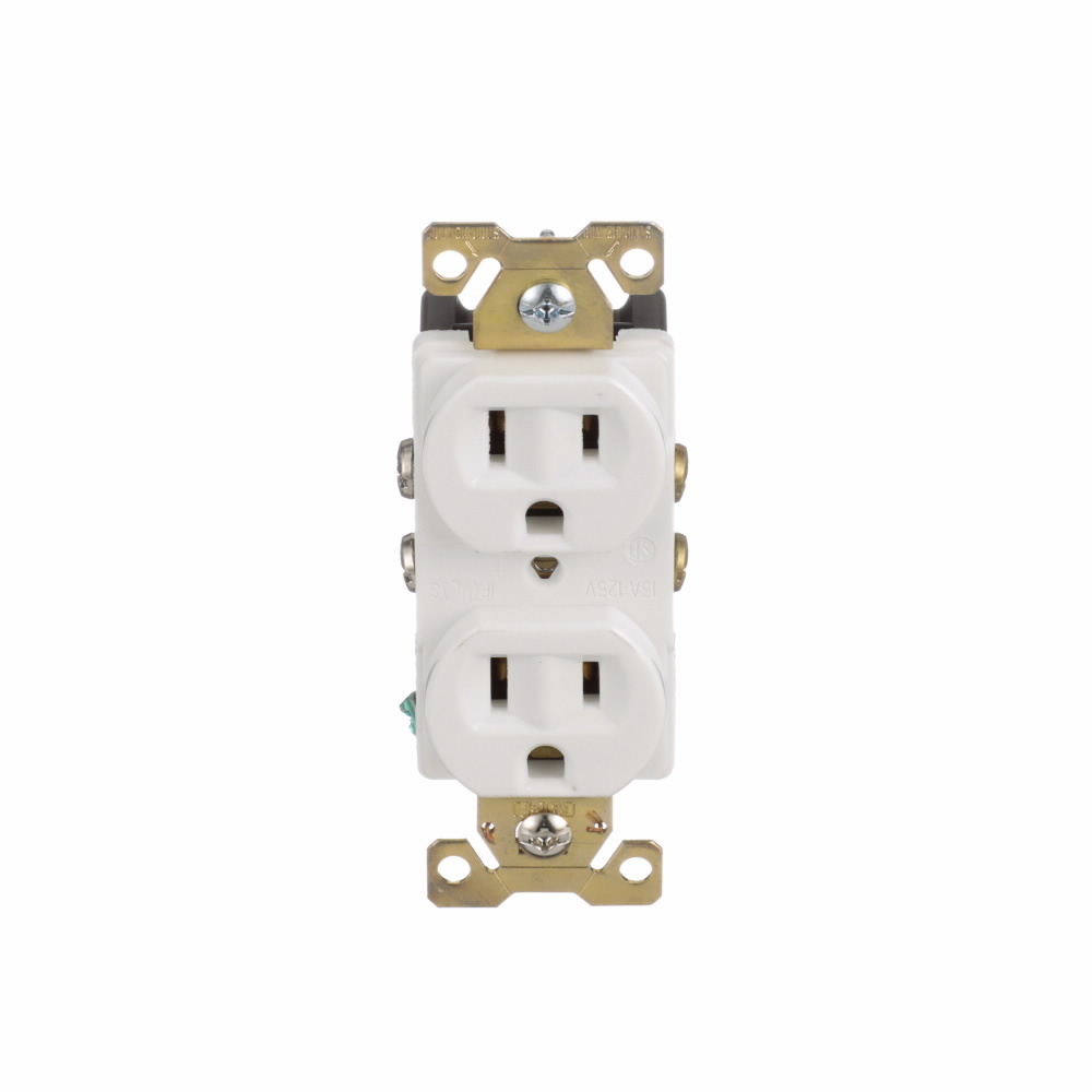 EATON Wiring Devices Arrow Hart AH5252W Auto Grounding Duplex Extra Heavy Duty Standard Straight Blade Receptacle, 125 V, 15 A, 2 Poles, 3 Wires, White