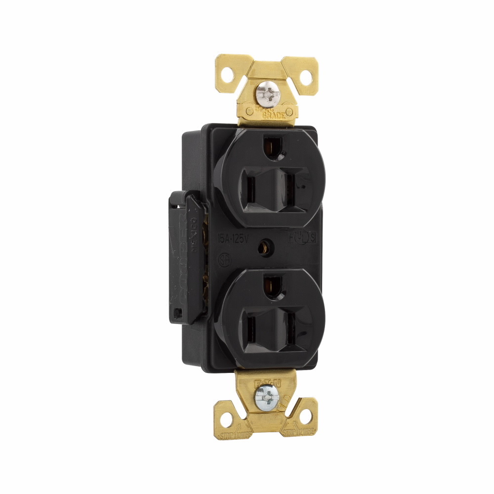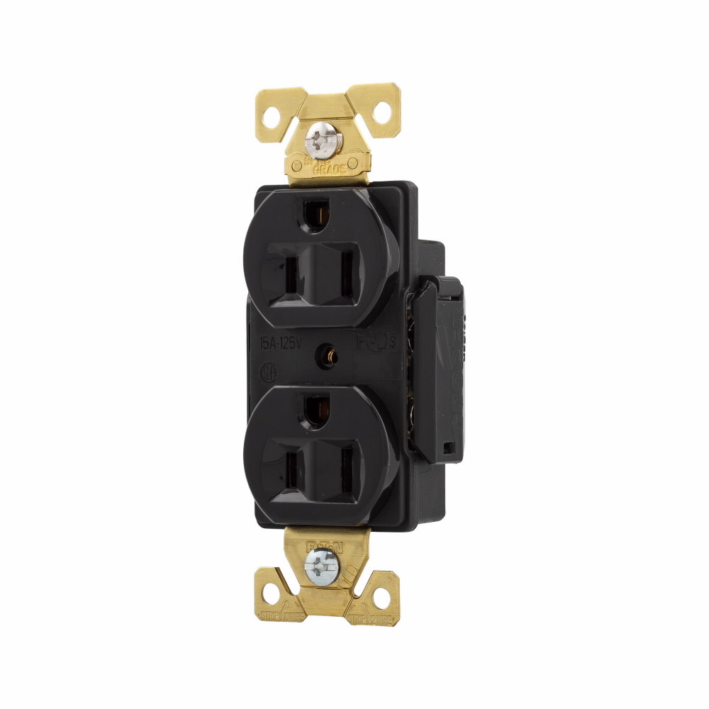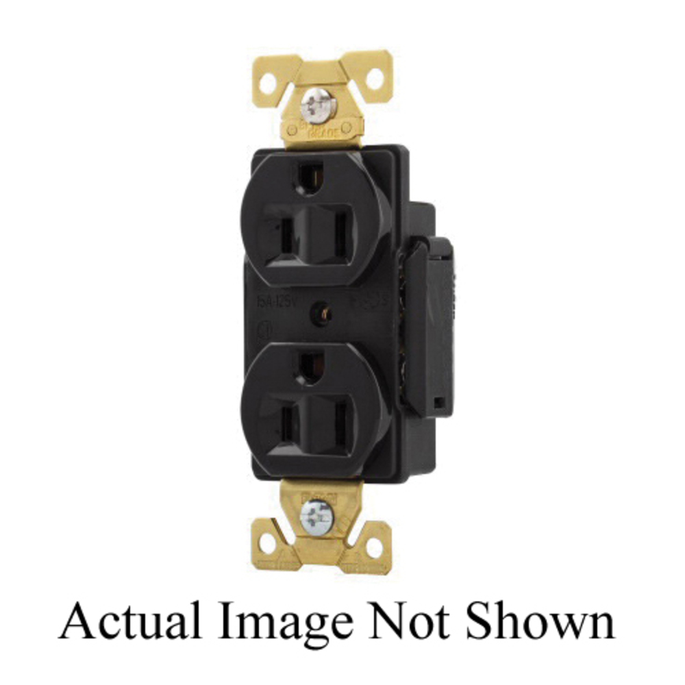 EATON Arrow Hart™ Eaton Wiring Devices AH5262BK AH5262 Duplex Premium Straight Blade Receptacle, 125 VAC, 15 A, 2 Poles, 3 Wires, Black