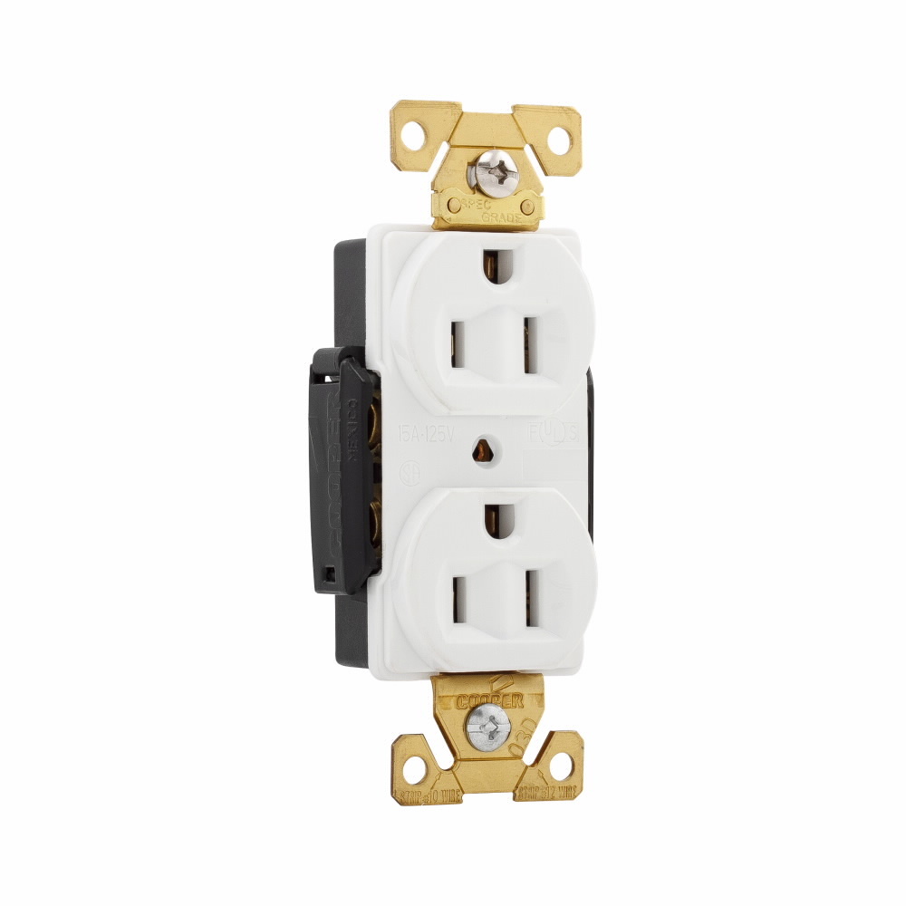 EATON Arrow Hart™ Eaton Wiring Devices AH5262W AH5262 Duplex Premium Straight Blade Receptacle, 125 VAC, 15 A, 2 Poles, 3 Wires, White