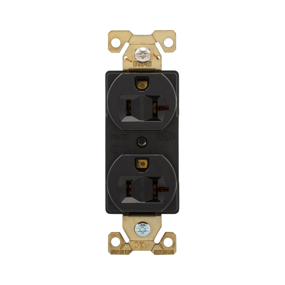 EATON Arrow Hart® AH5352BK Auto Grounding Duplex/Single Standard Straight Blade Receptacle, 125 VAC, 20 A, 2 Poles, 3 Wires, Black