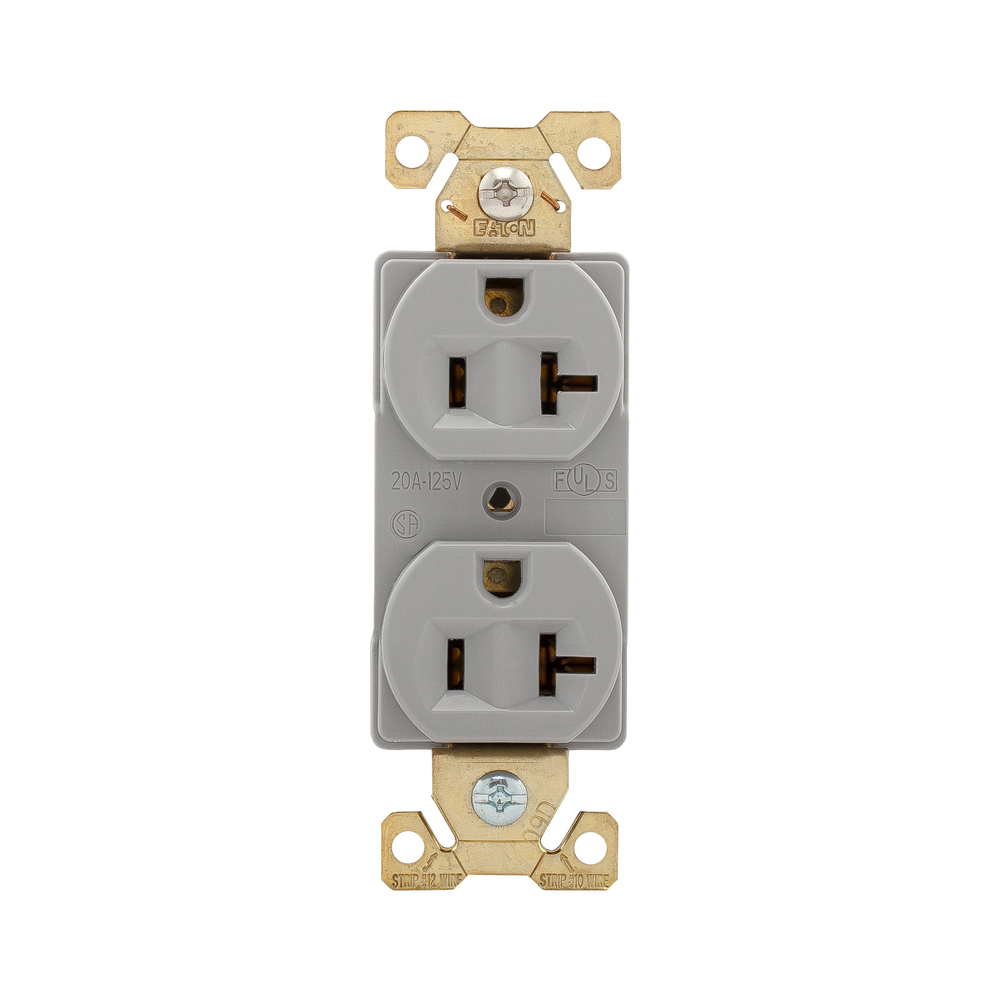 EATON Arrow Hart® AH5352GY Duplex Straight Blade Receptacle, 125 VAC, 20 A, 2 Poles, 3 Wires, Gray