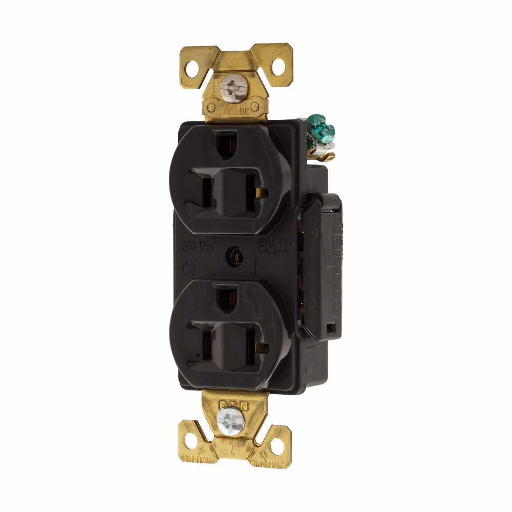 EATON Arrow Hart™ Eaton Wiring Devices AH5362BK AH5362 Duplex Premium Straight Blade Receptacle, 125 VAC, 20 A, 2 Poles, 3 Wires, Black