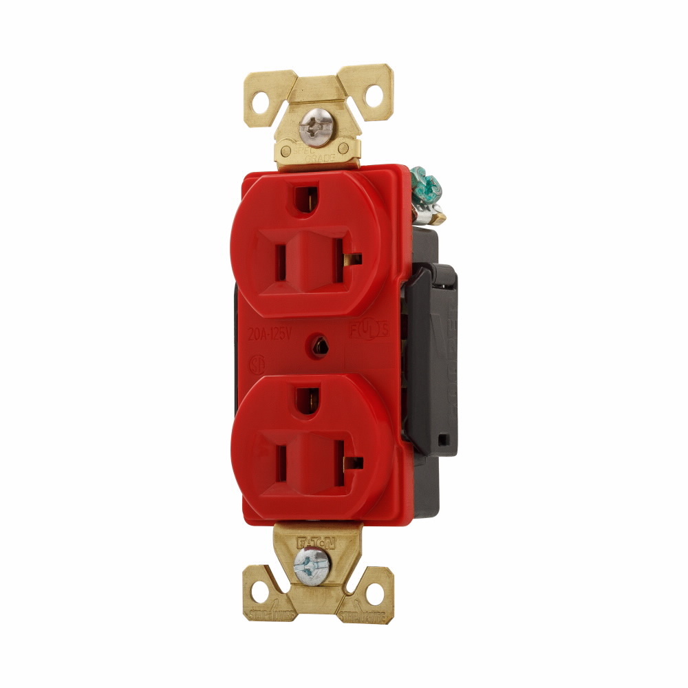 EATON Arrow Hart™ Eaton Wiring Devices AH5362RD AH5362 Duplex Premium Straight Blade Receptacle, 125 VAC, 20 A, 2 Poles, 3 Wires, Red