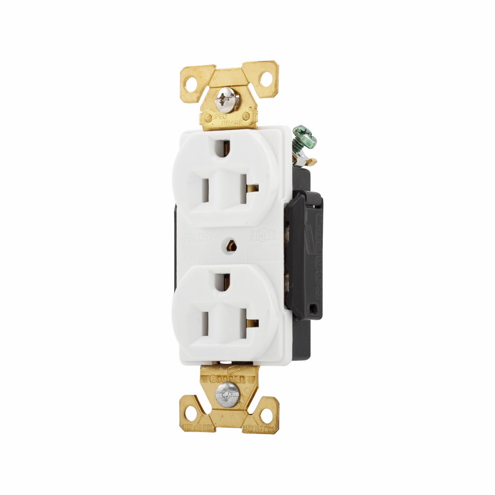 EATON Arrow Hart™ Eaton Wiring Devices AH5362W AH5362 Duplex Premium Straight Blade Receptacle, 125 VAC, 20 A, 2 Poles, 3 Wires, White