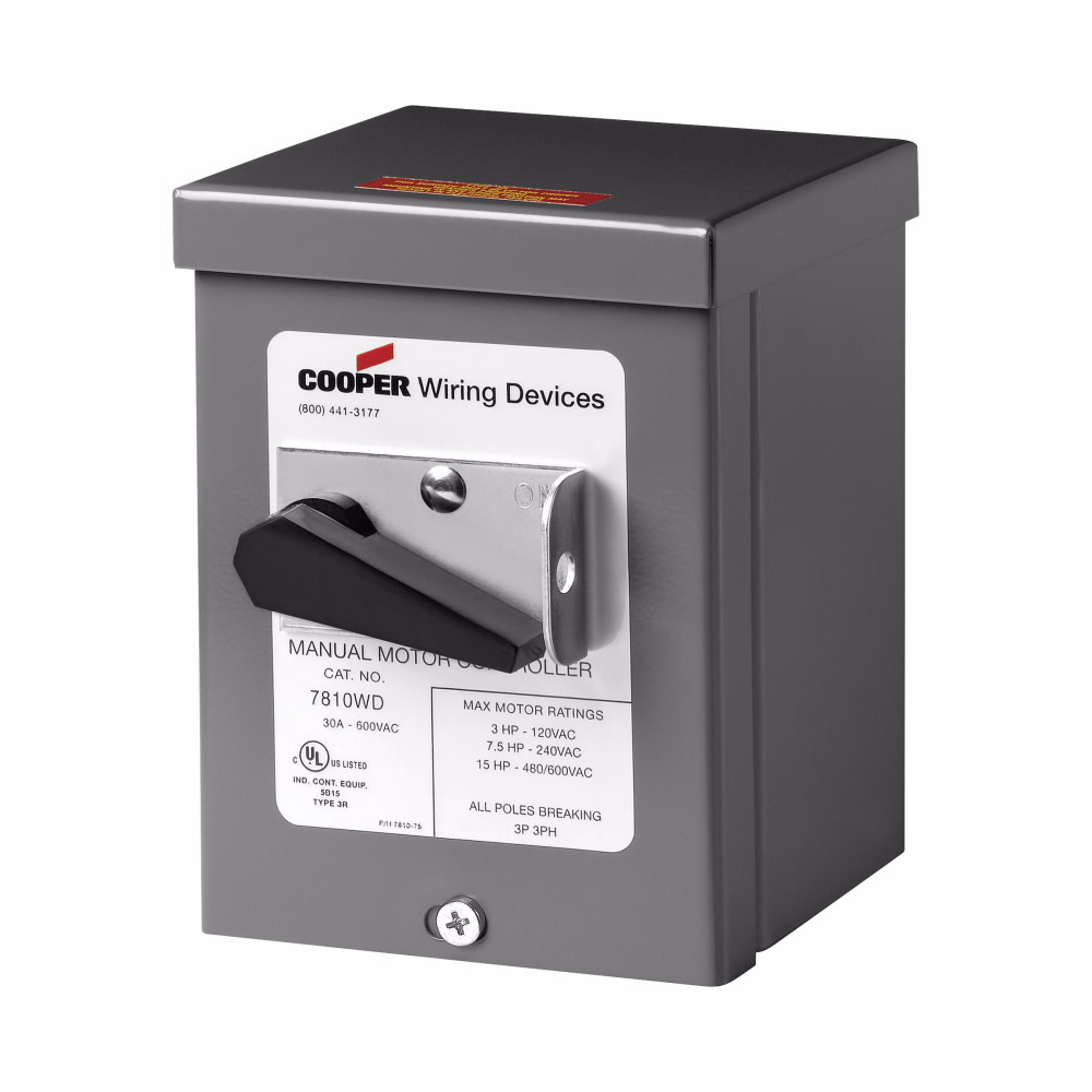 EATON Arrow Hart™ Eaton Wiring Devices AH7810WD Manual Motor Control Switch, 600 VAC, 30 A, 7.5 hp, 15 hp Power Rating, TPST Contact