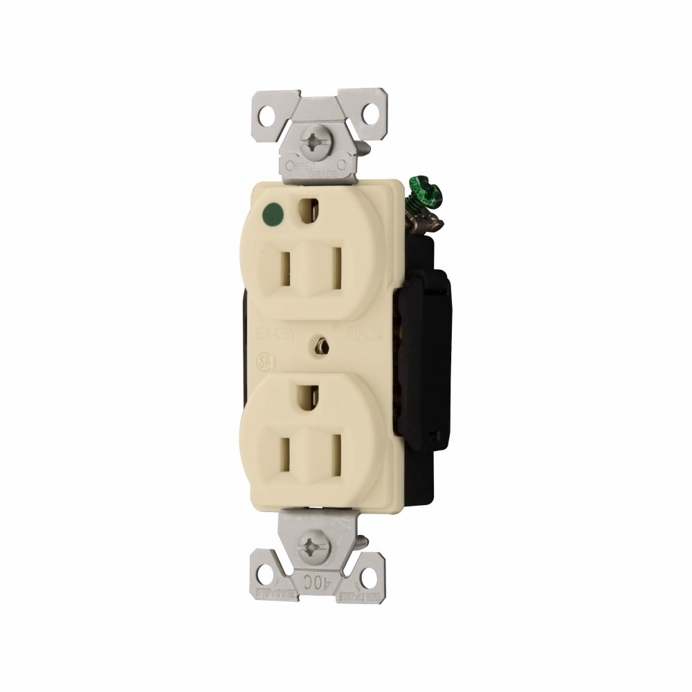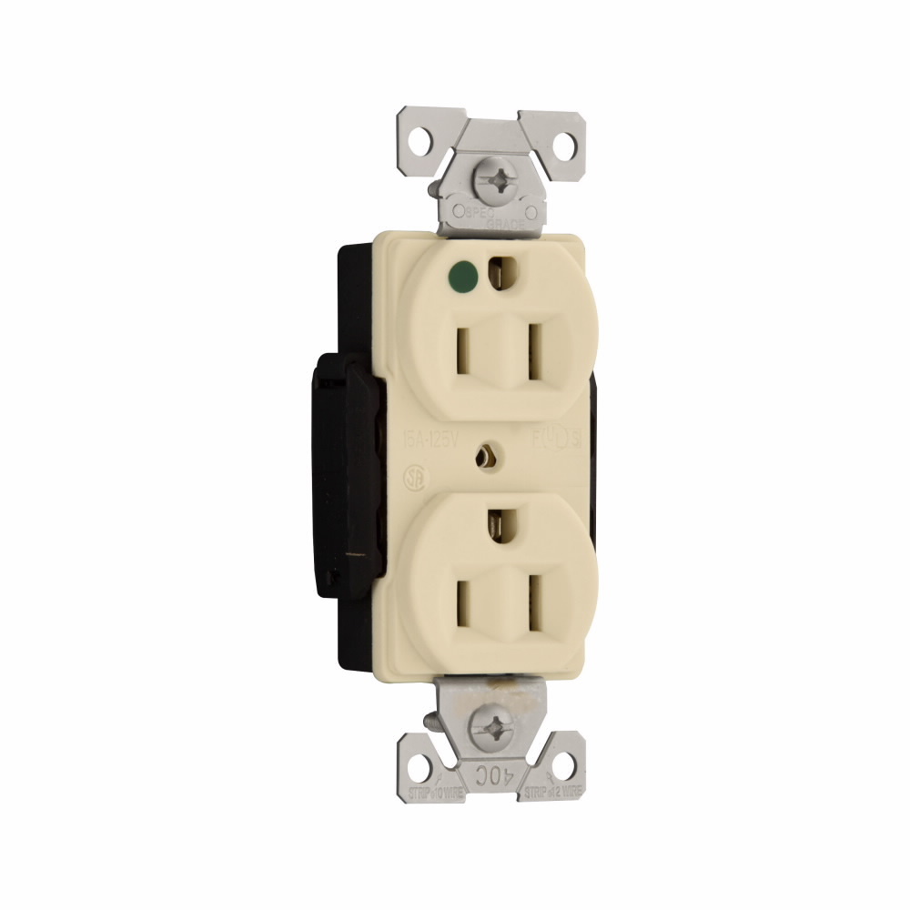 EATON Arrow Hart™ Eaton Wiring Devices AH8200V AH8200 Duplex Illuminated Premium Straight Blade Receptacle, 125 VAC, 15 A, 2 Poles, 3 Wires, Ivory