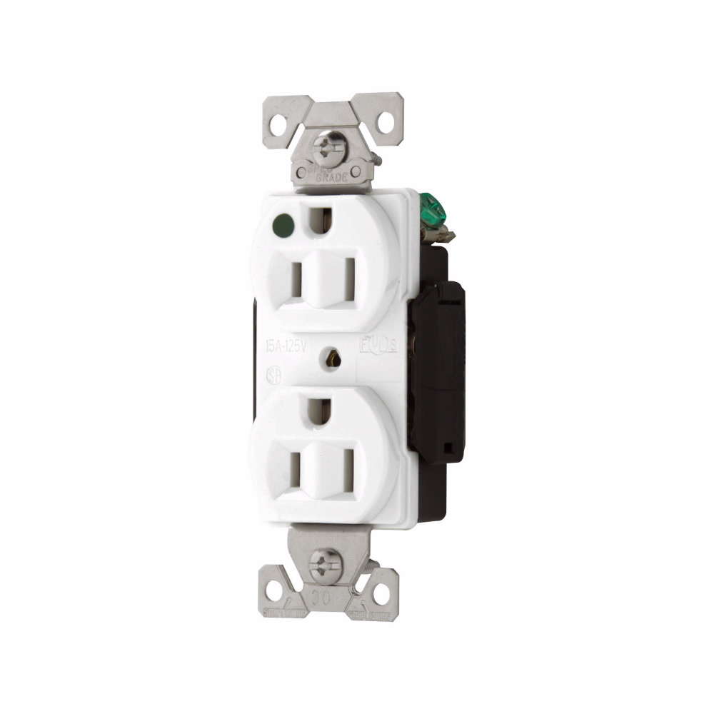 EATON Arrow Hart™ Eaton Wiring Devices AH8200W AH8200 Duplex Illuminated Premium Straight Blade Receptacle, 125 VAC, 15 A, 2 Poles, 3 Wires, White