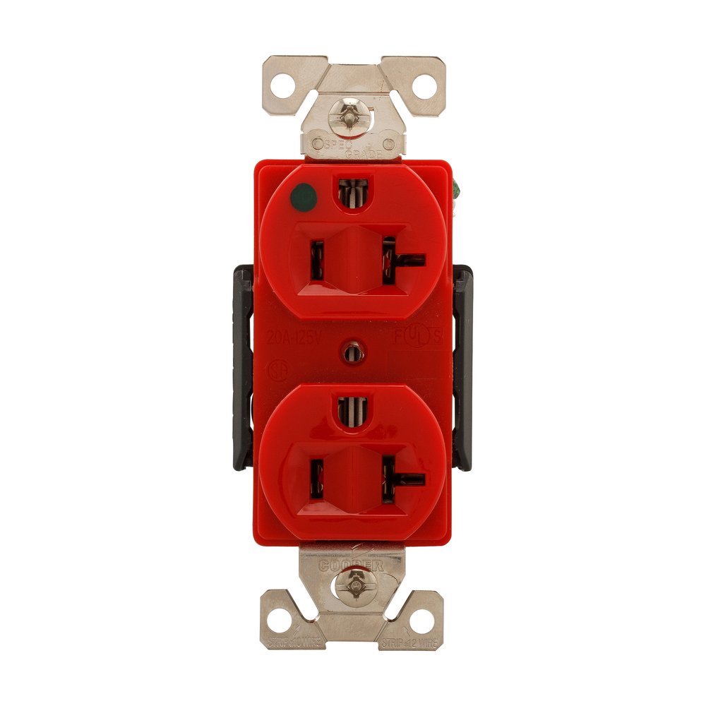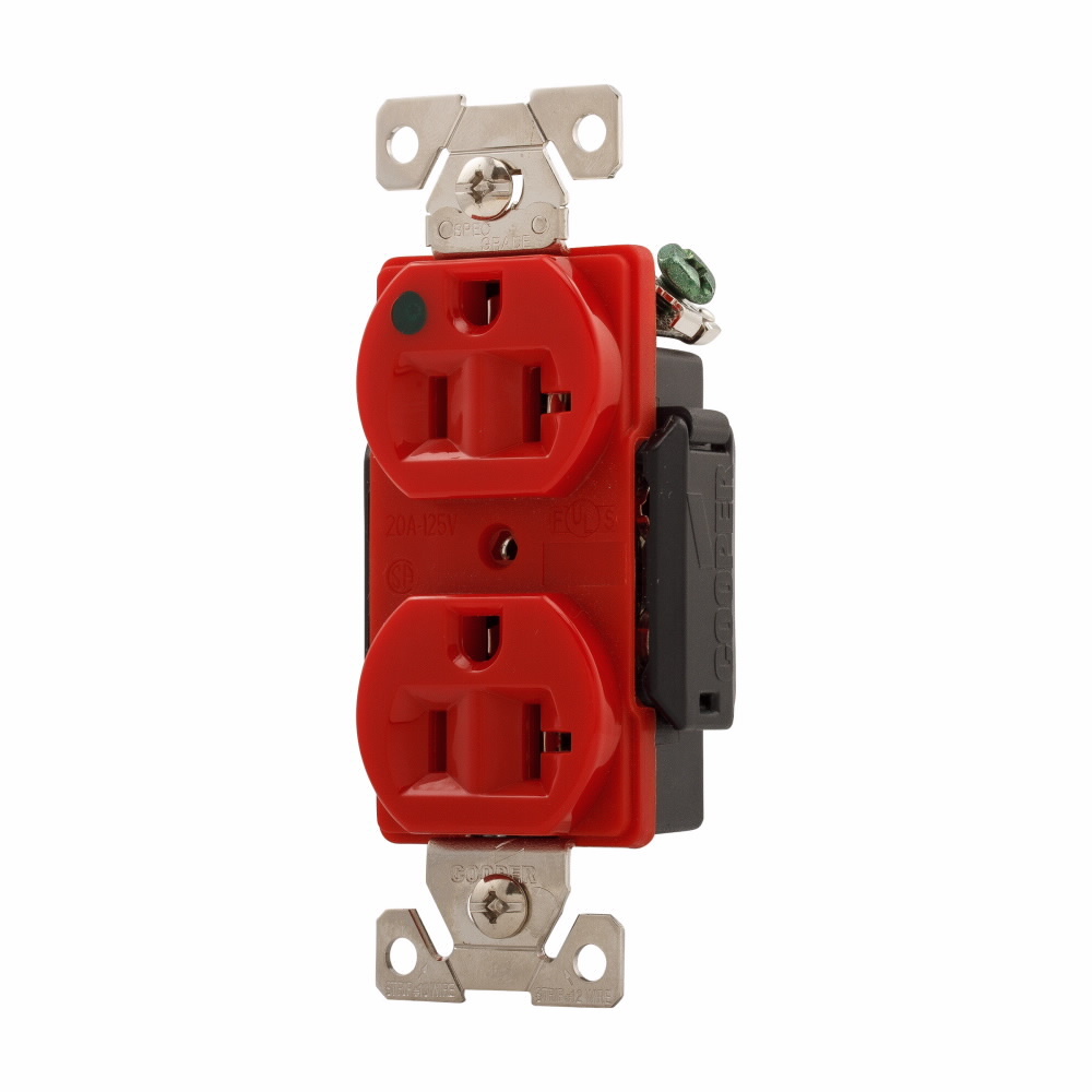 EATON Arrow Hart® AH8300LTRD AH8300 Duplex Straight Blade Receptacle, 125 V, 20 A, 2 Poles, 3 Wires, Red