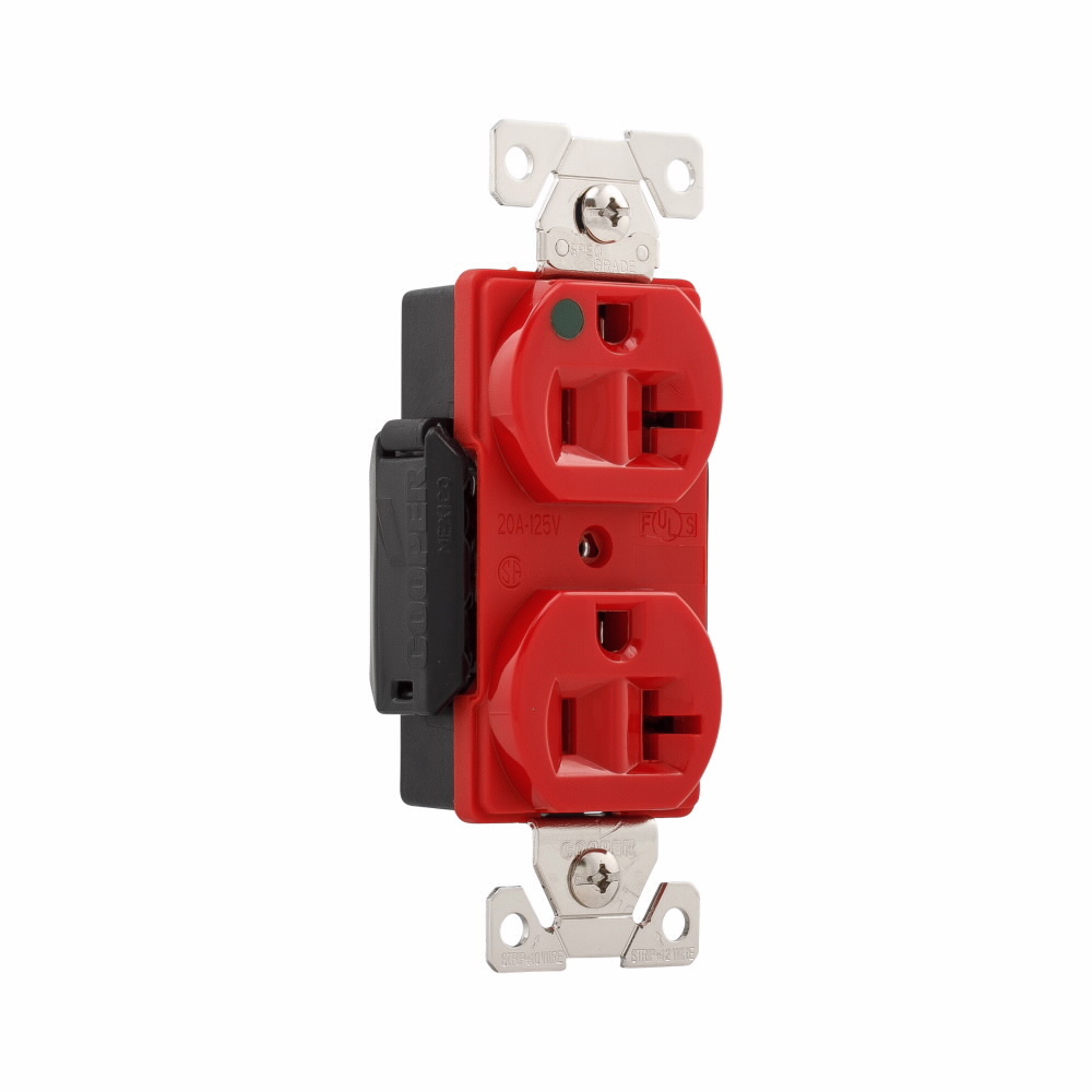 EATON Arrow Hart™ Eaton Wiring Devices AH8300RD AH8300 Duplex Illuminated Premium Straight Blade Receptacle, 125 VAC, 20 A, 2 Poles, 3 Wires, Red