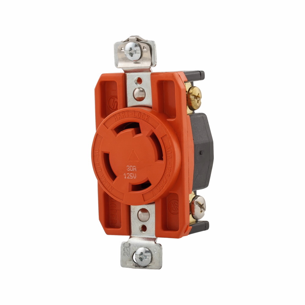 EATON Hart-Lock® AHIGL1430R Isolated Ground Locking Receptacle, 125/250 V, 30 A, 3 Poles, 4 Wires, Orange