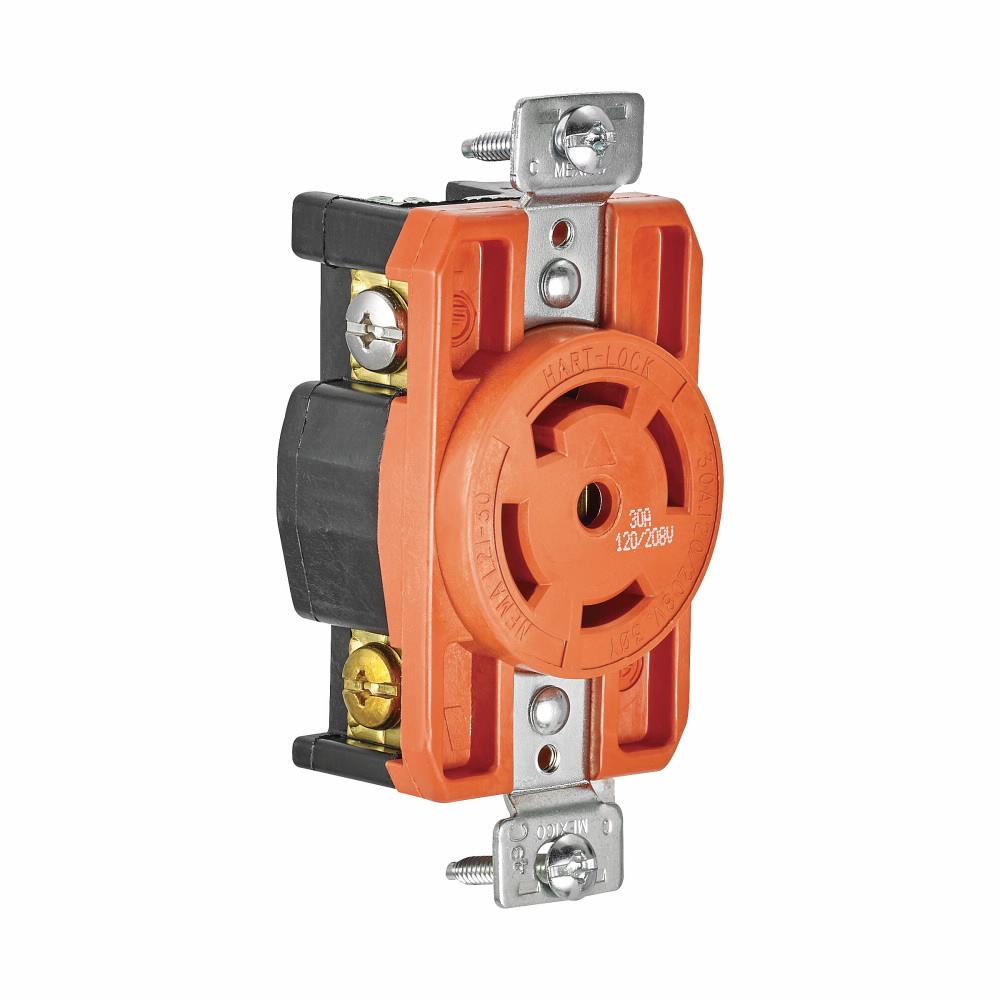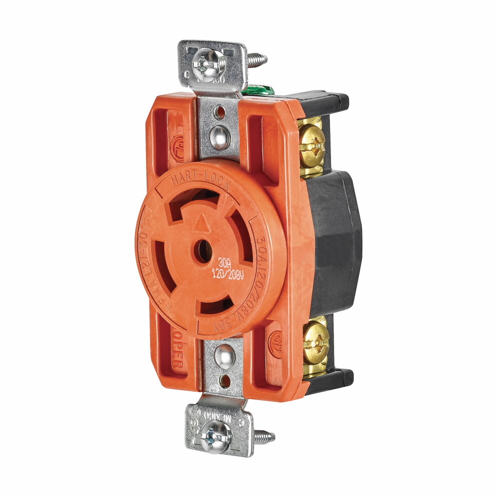 EATON Hart-Lock® AHIGL2130R Isolated Ground Locking Receptacle, 120/208 V, 30 A, 4 Poles, 5 Wires, Orange