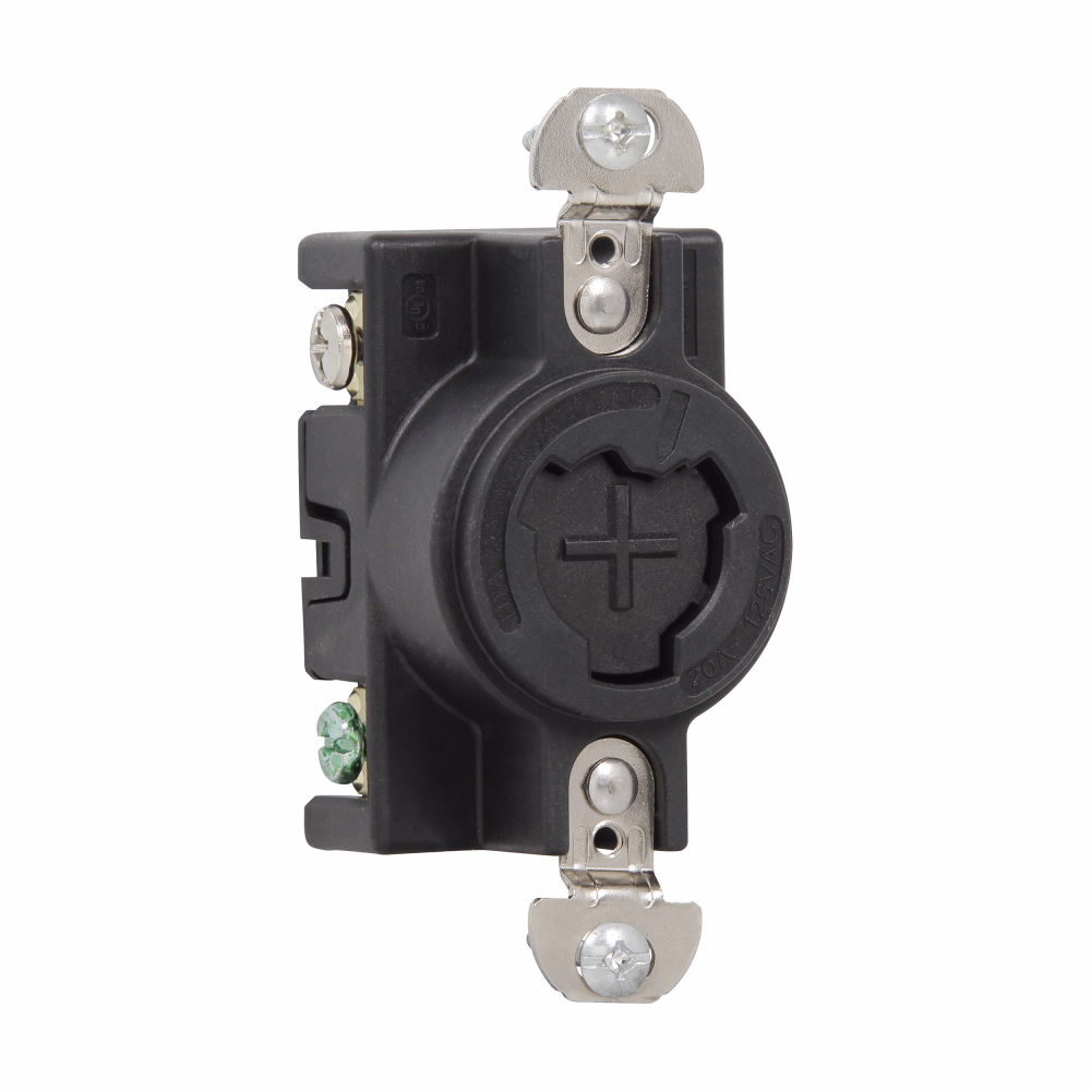 EATON AHPL23000G Power Lock Receptacle, 125 VAC, 20 A, 3 Poles, 3 Wires, Black