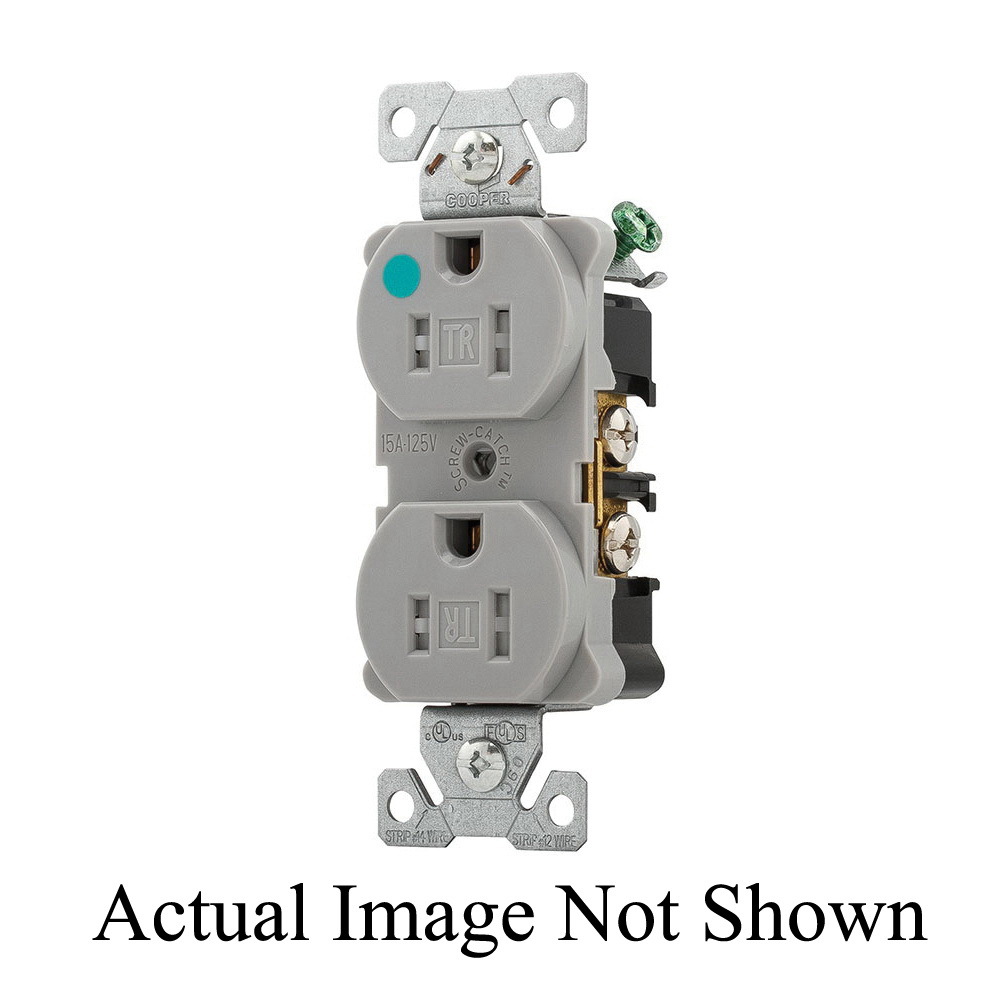 EATON Arrow Hart® AHTR8200B AHTR8200 Duplex Heavy Duty Grounding Tamper-Resistant Straight Blade Receptacle With Terminal Guard, 125 VAC, 15 A, 2 Poles, 3 Wires, Brown