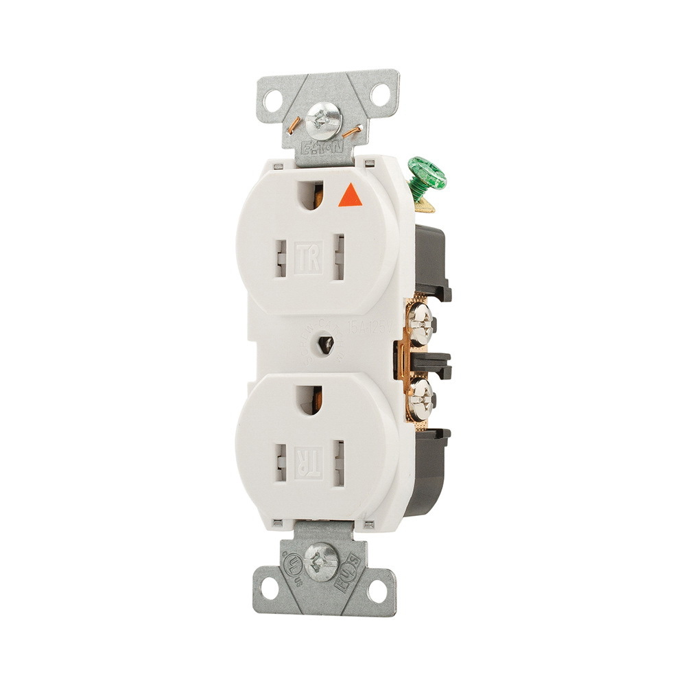 EATON Arrow Hart® AHTRIG5262W AHTRIG5262 Duplex Heavy Duty Grounding Isolated Tamper-Resistant Straight Blade Receptacle, 125 VAC, 15 A, 2 Poles, 3 Wires, White