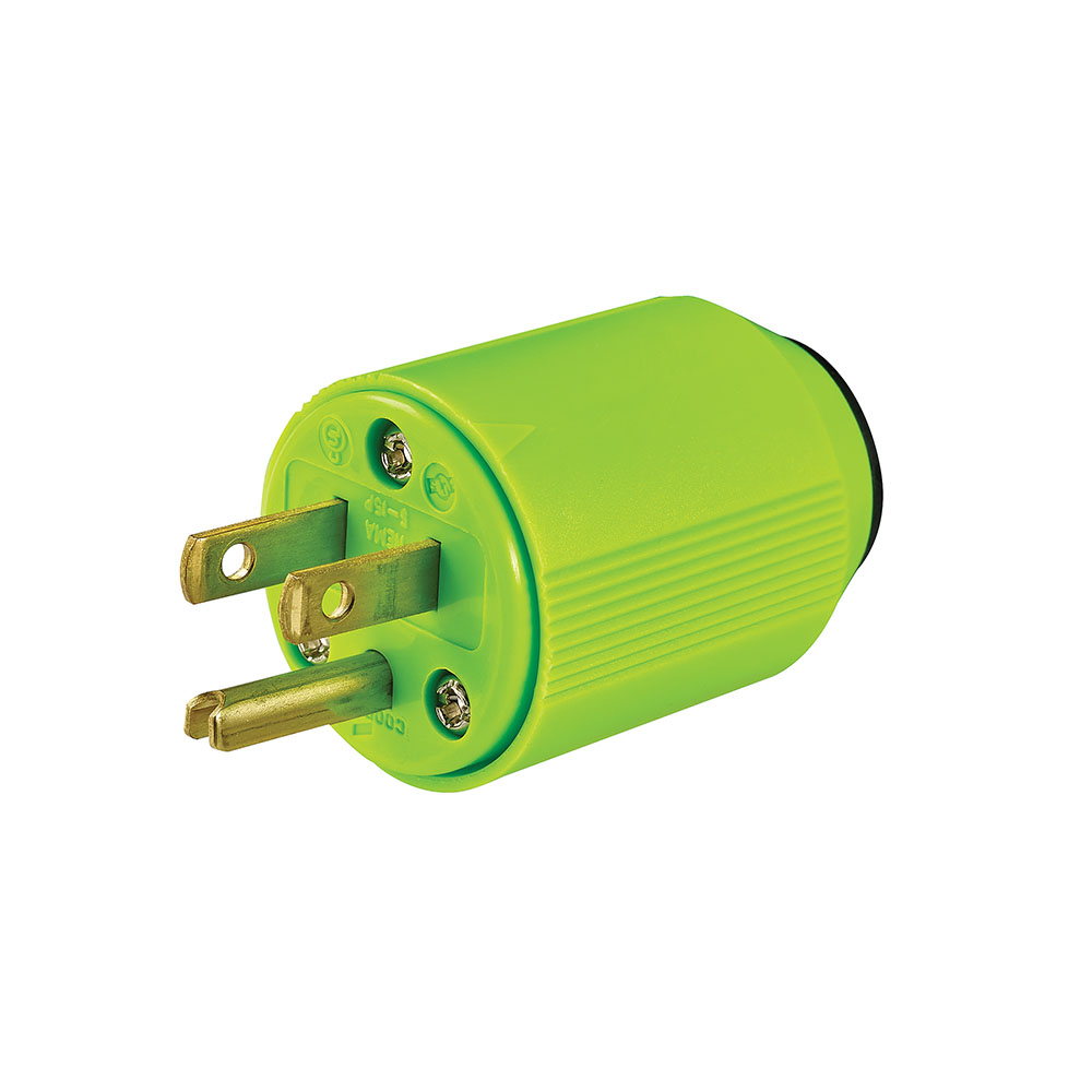 EATON AutoGrip™ BP3867-4GN Straight Blade Plug, 125 VAC, 15 A, 2 Poles, 3 Wires, Green