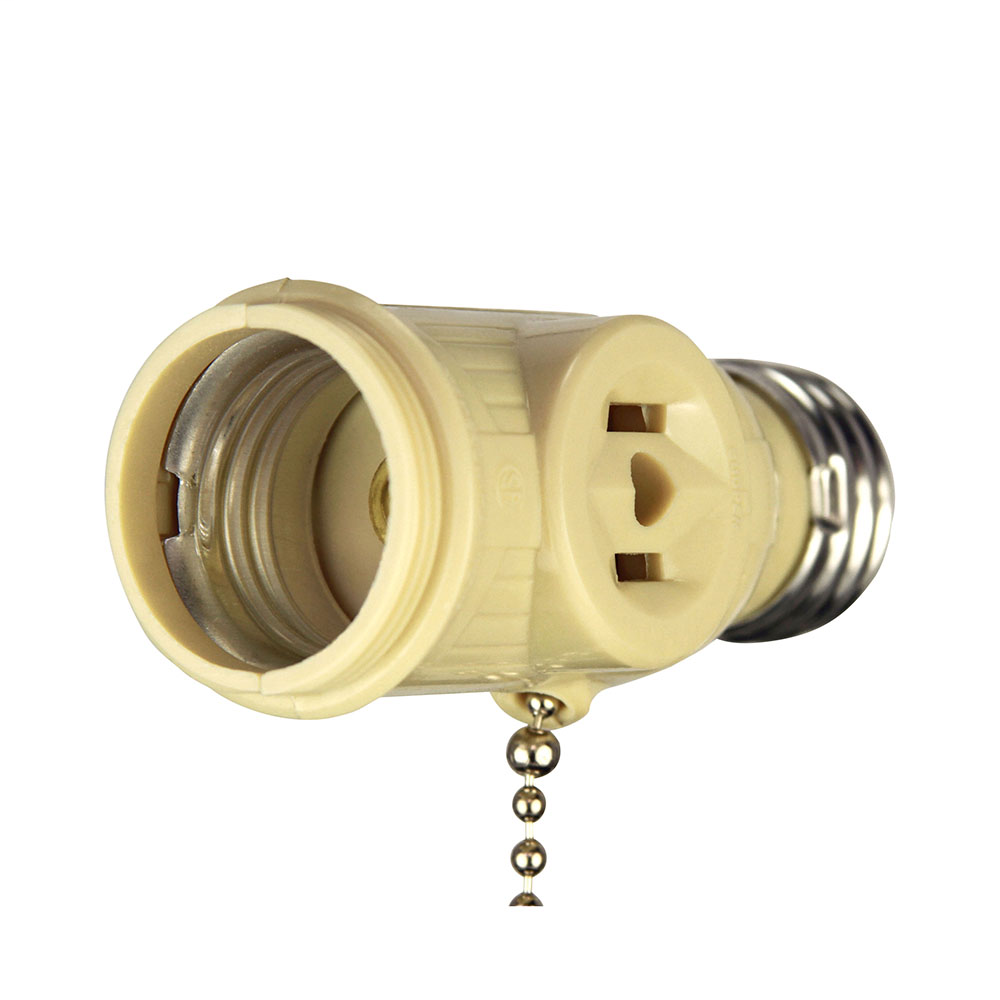 EATON Arrow Hart® BP718V Polarized Socket Adapter With (2) Receptacle Pull Chain, 660 W, 125 VAC, Medium