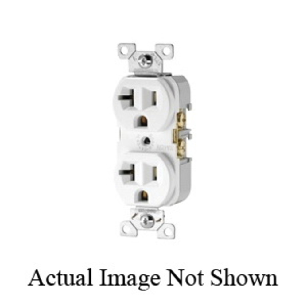 EATON Arrow Hart® BR20V-CP-L BR20 Duplex Straight Blade Receptacle, 125 VAC, 20 A, 2 Poles, 3 Wires, Ivory