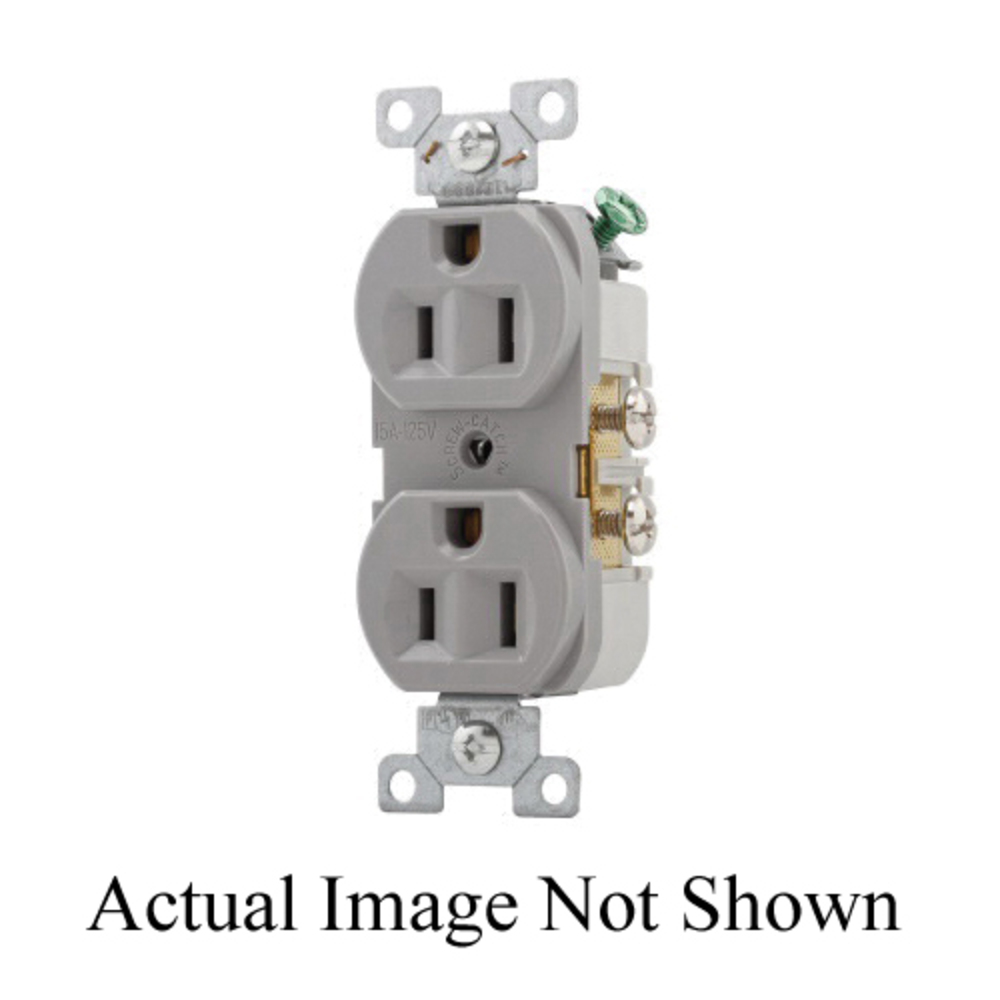 EATON Arrow Hart™ Eaton Wiring Devices CR15GY CR15 Duplex Tamper-Resistant Straight Blade Receptacle, 125 VAC, 15 A, 2 Poles, 3 Wires, Gray