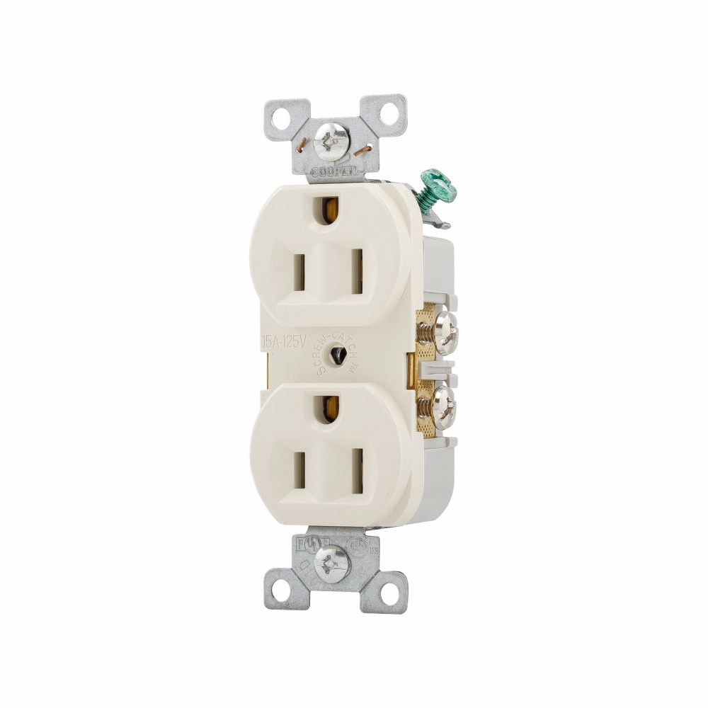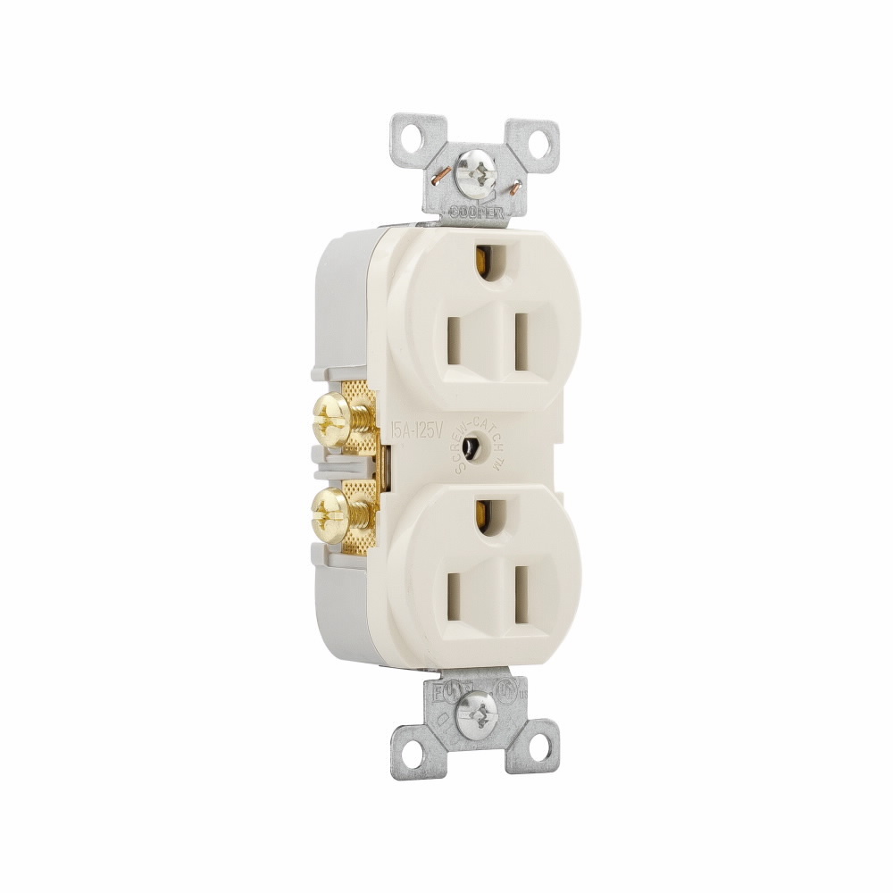 EATON Arrow Hart™ Eaton Wiring Devices CR15LA CR15 Duplex Tamper-Resistant Straight Blade Receptacle, 125 VAC, 15 A, 2 Poles, 3 Wires, Light Almond