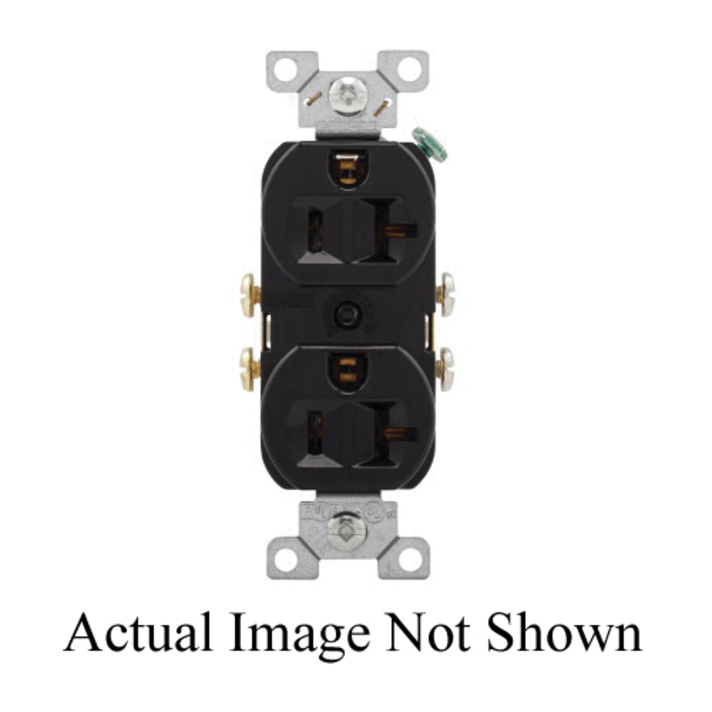 EATON Arrow Hart™ Eaton Wiring Devices CR20BK CR20 Duplex Tamper-Resistant Straight Blade Receptacle, 125 VAC, 20 A, 2 Poles, 3 Wires, Black