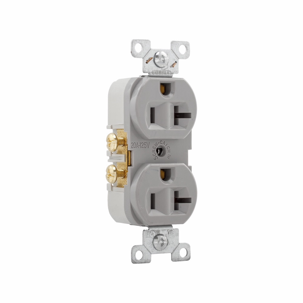 EATON Arrow Hart™ Eaton Wiring Devices CR20GY CR20 Duplex Tamper-Resistant Straight Blade Receptacle, 125 VAC, 20 A, 2 Poles, 3 Wires, Gray