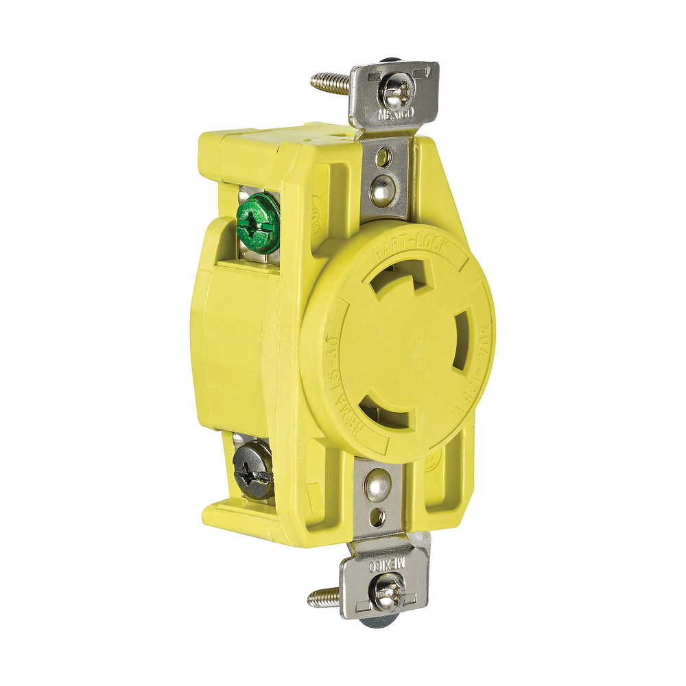 EATON Hart-Lock® CRL530R Single Locking Receptacle, 125 V, 30 A, 2 Poles, 3 Wires, Yellow