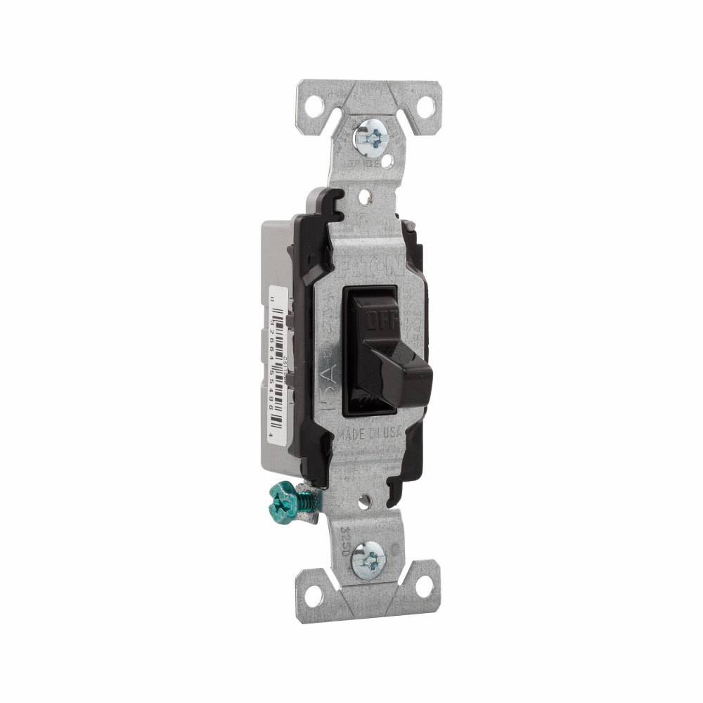 EATON Arrow Hart CS115BK Heavy Duty Specification Grade AC Toggle Switch, 120/277 V, 15 A, 1/2 hp, 2 hp Power Rating