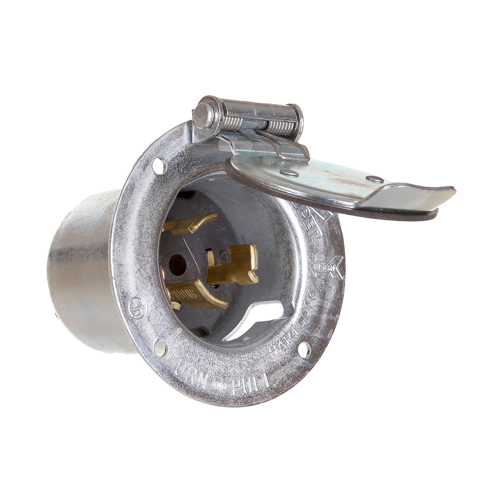 EATON Hart-Lock® CS6378 Locking Flanged Inlet With Lid, 125 VAC, 50 A, 2 Poles, 3 Wires, Steel