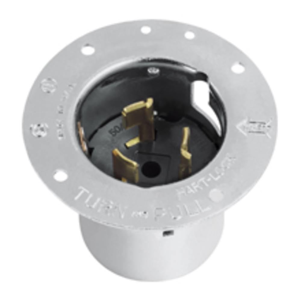 EATON Hart-Lock® CS8177 3-Phase Locking Flanged Inlet With Lid, 480 VAC, 50 A, 3 Poles, 4 Wires, Steel