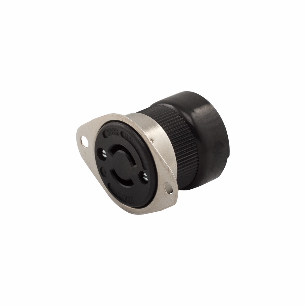 EATON Arrow Hart™ Safety Grip™ Eaton Wiring Devices CWL220FO Locking Flanged Outlet, 250 VAC, 20 A, 2 Poles, 2 Wires, Black/White