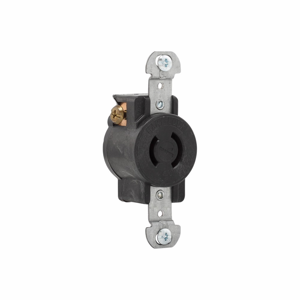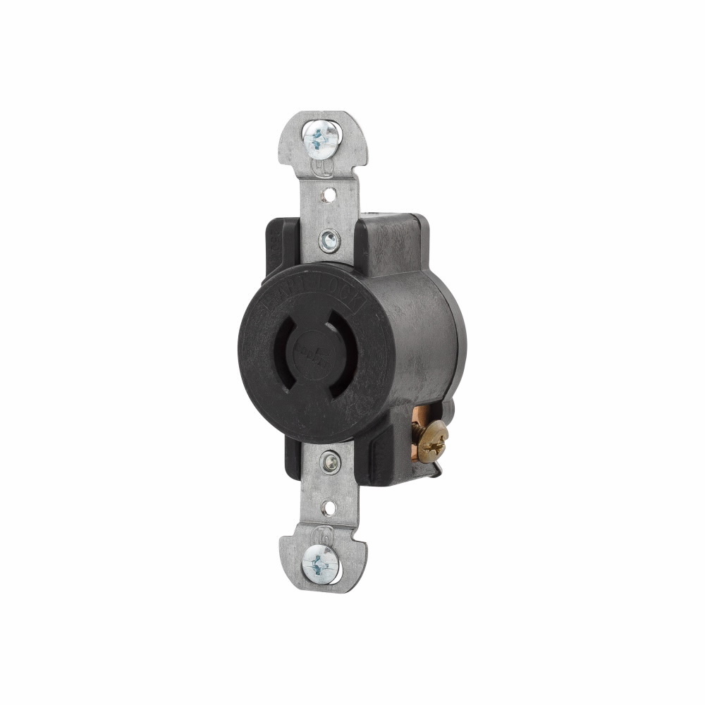 EATON CWL220R Single Standard Locking Receptacle, 250 VAC, 20 A, 2 Poles, 2 Wires, Black