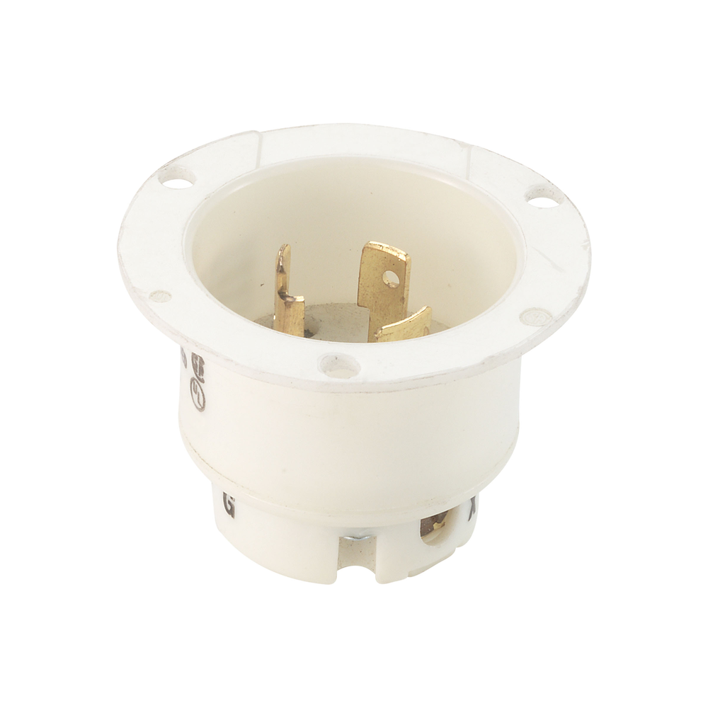 EATON Hart-Lock® CWL920FI Locking Flanged Inlet, 600 V, 20 A, 2 Poles, 3 Wires, White