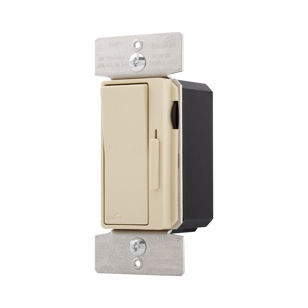 EATON DLC03P-V Decorator Dimmer Switch, 120 V, 1 Poles, 3-Way/Preset Operation, Ivory