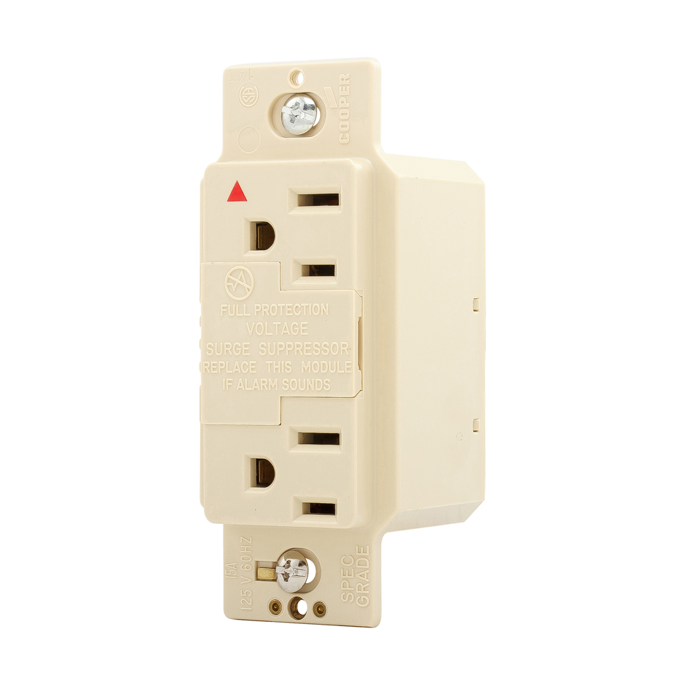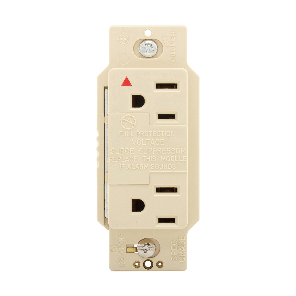 Eaton Wiring Devices SurgeBloc® IG1208V 2-Pole 3-Wire Duplex Isolated Grounding Straight Blade TVSS Surge Suppression Receptacle With Audible Alarm, 125 VAC, 15 A