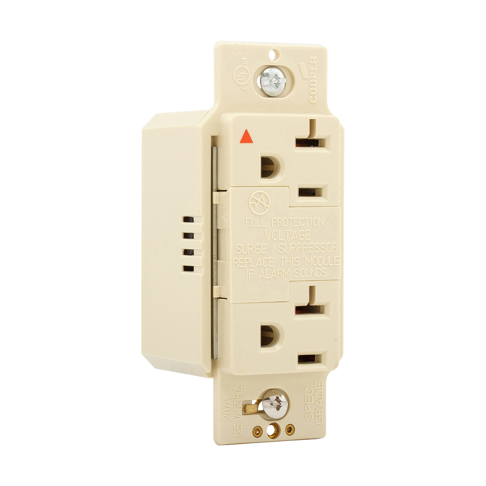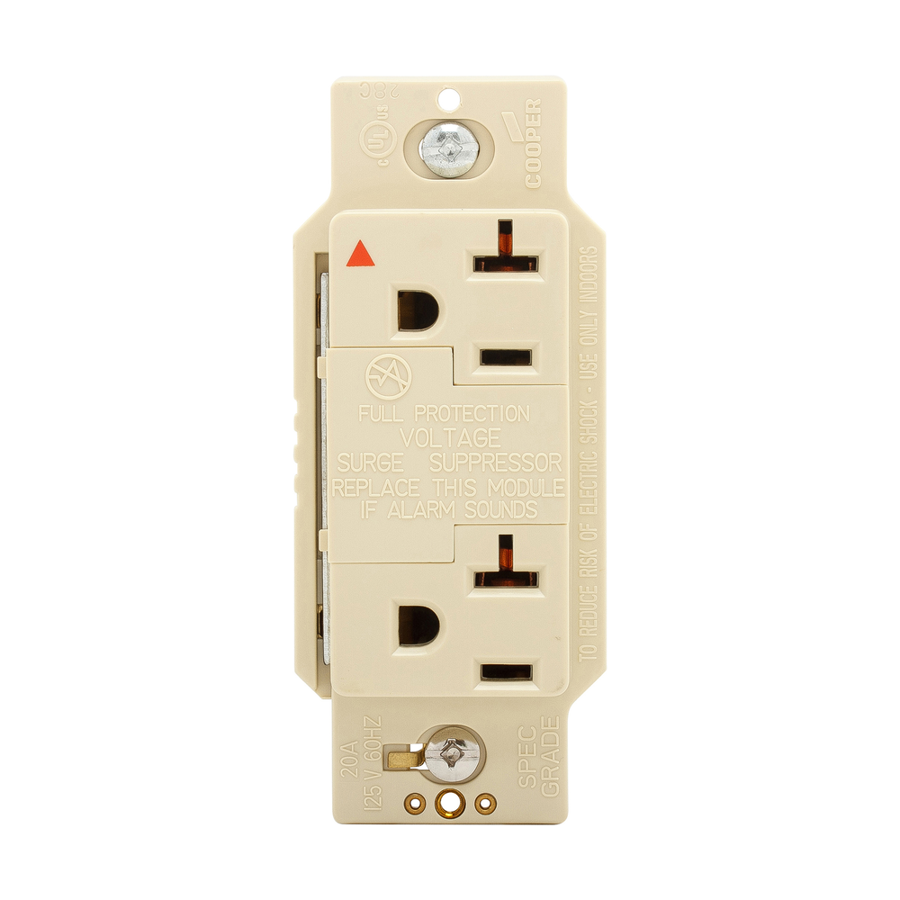 Eaton Wiring Devices SurgeBloc® IG1210V 2-Pole 3-Wire Duplex Isolated Grounding Straight Blade TVSS Surge Suppression Receptacle With Audible Alarm, 125 VAC, 20 A