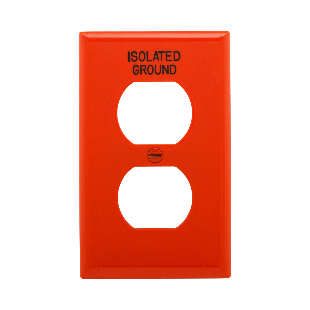 EATON Arrow Hart IG5132RN-BOX Isolated Ground Pre-Marked Standard Receptacle Wallplate, 1 Gang, Standard, Nylon, Orange