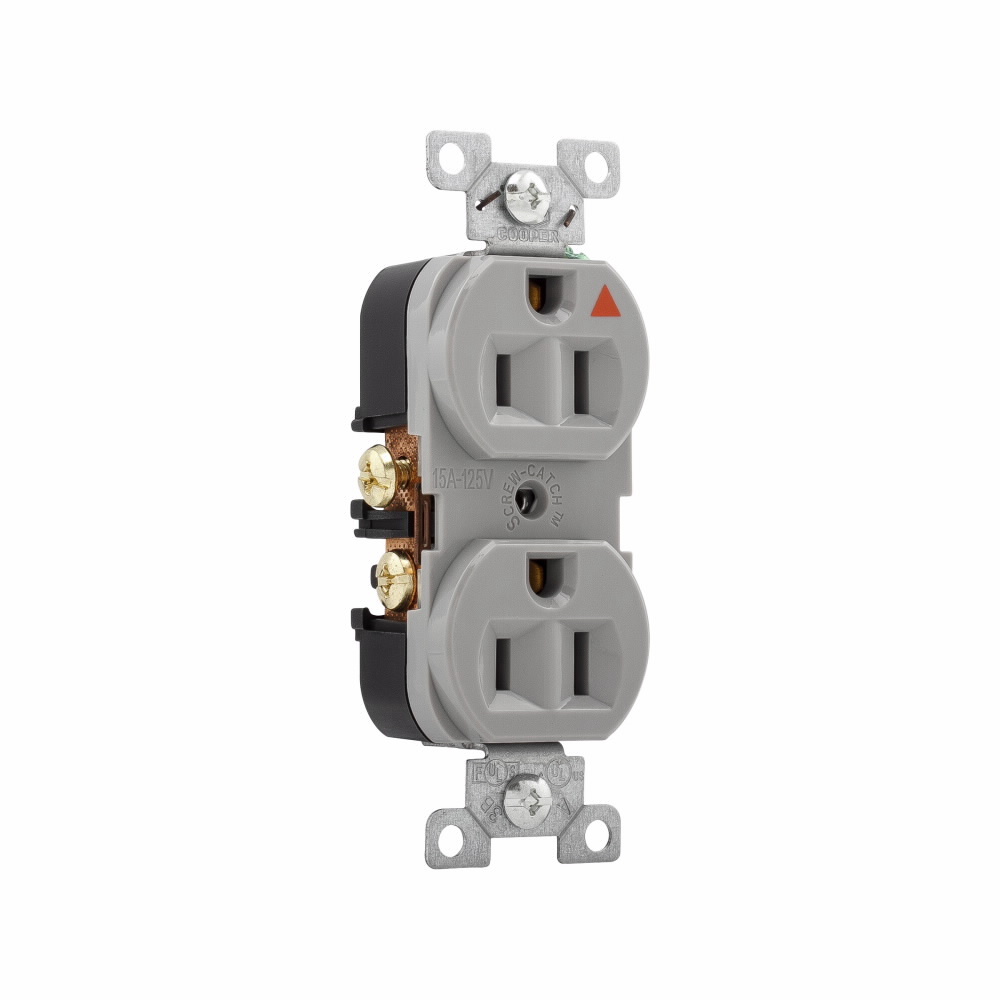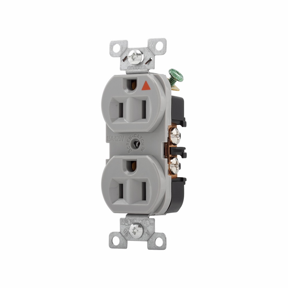 EATON Arrow Hart® IG5262GY Duplex/Single Straight Blade Receptacle, 125 VAC, 15 A, 2 Poles, 3 Wires, Gray