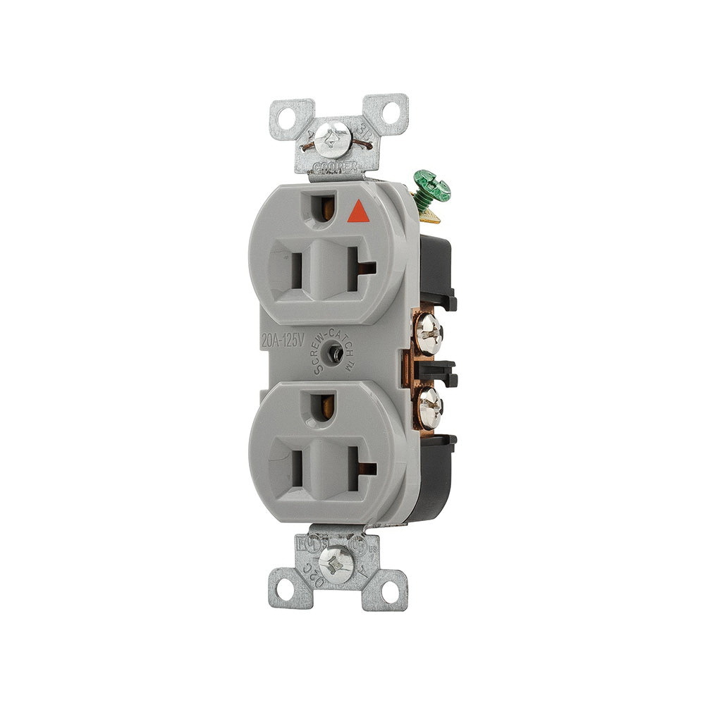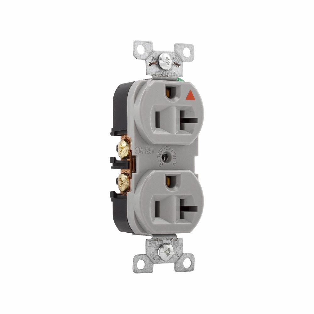 EATON Arrow Hart® IG5362GY IG5362 Duplex Grounding Isolated Straight Blade Receptacle, 125 VAC, 20 A, 2 Poles, 3 Wires, Gray