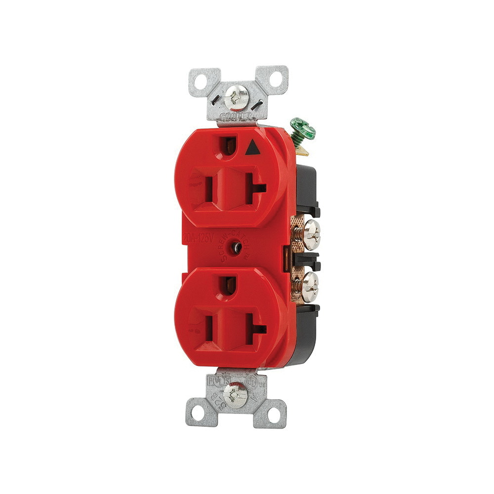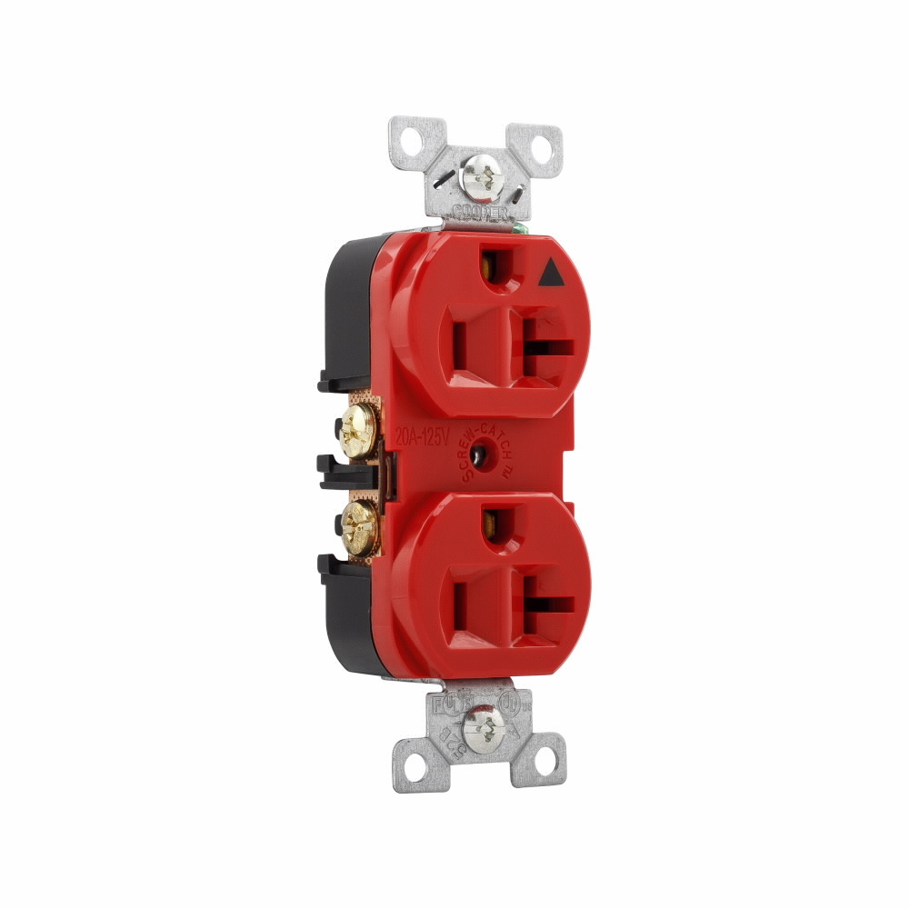 EATON Arrow Hart® IG5362RD IG5362 Duplex Grounding Isolated Straight Blade Receptacle, 125 VAC, 20 A, 2 Poles, 3 Wires, Red