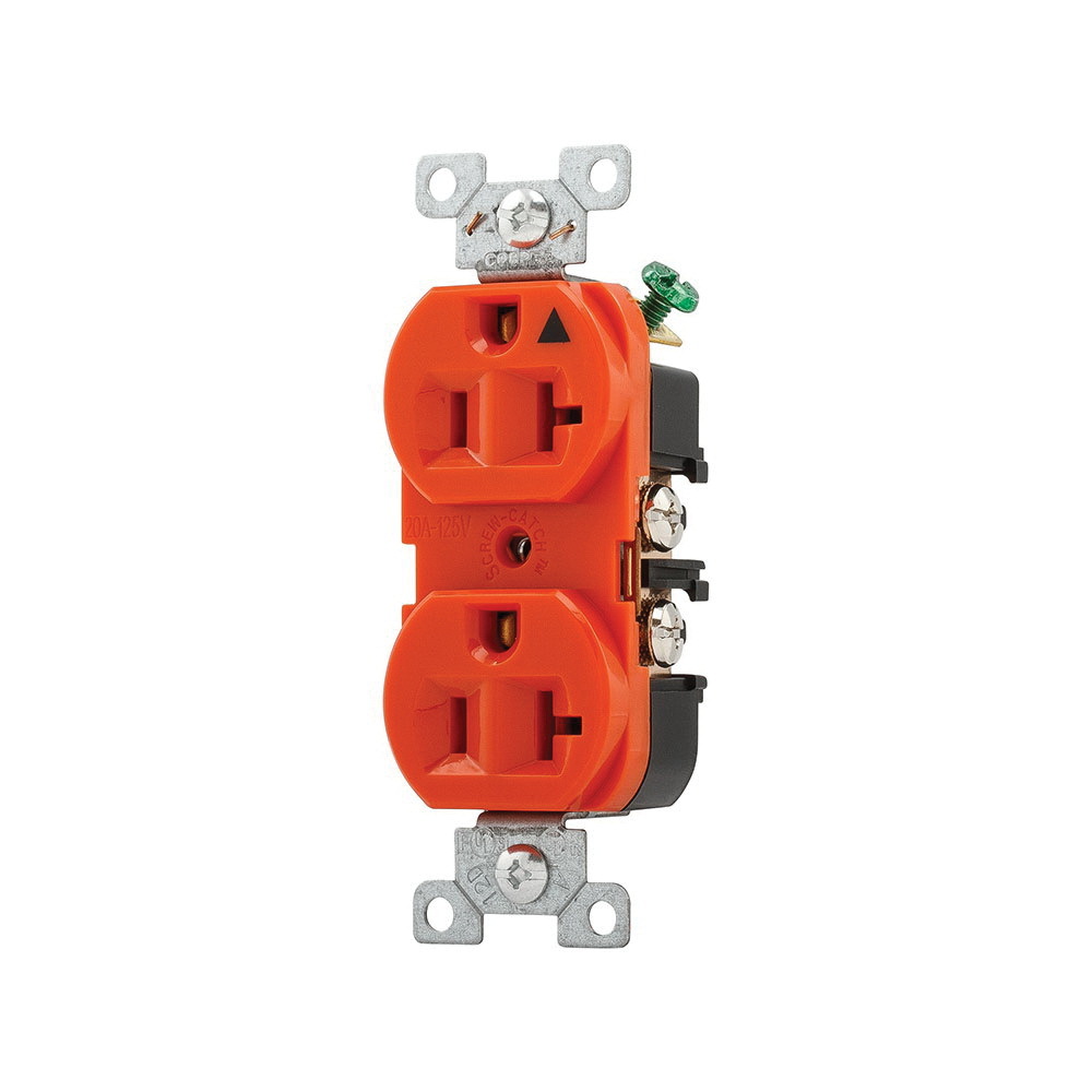 EATON Arrow Hart® IG5362RN IG5362 Duplex Grounding Isolated Straight Blade Receptacle, 125 VAC, 20 A, 2 Poles, 3 Wires, Orange