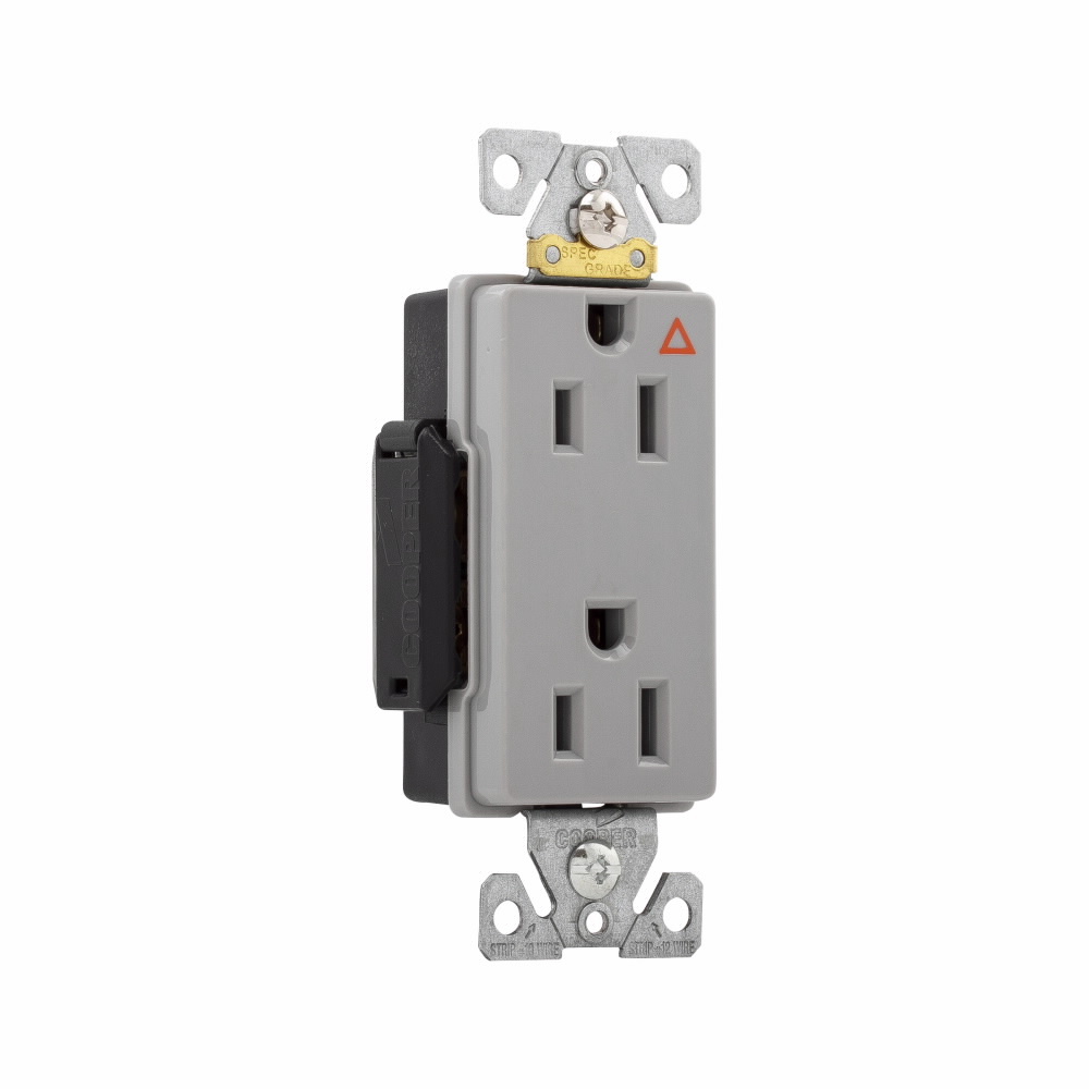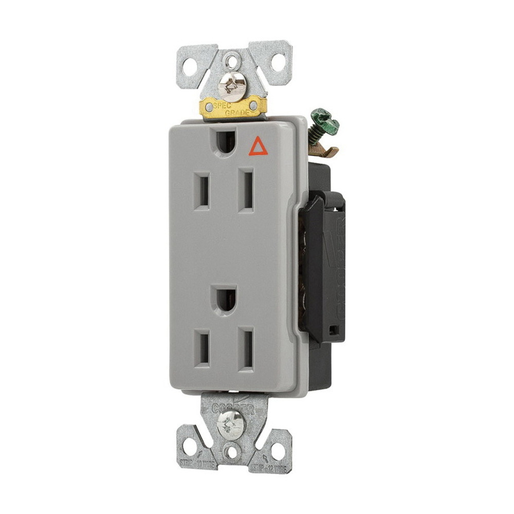EATON Arrow Hart® IG6262GY IG6262 Decorator Isolated Ground Single Straight Blade Receptacle, 125 VAC, 15 A, 2 Poles, 3 Wires, Gray
