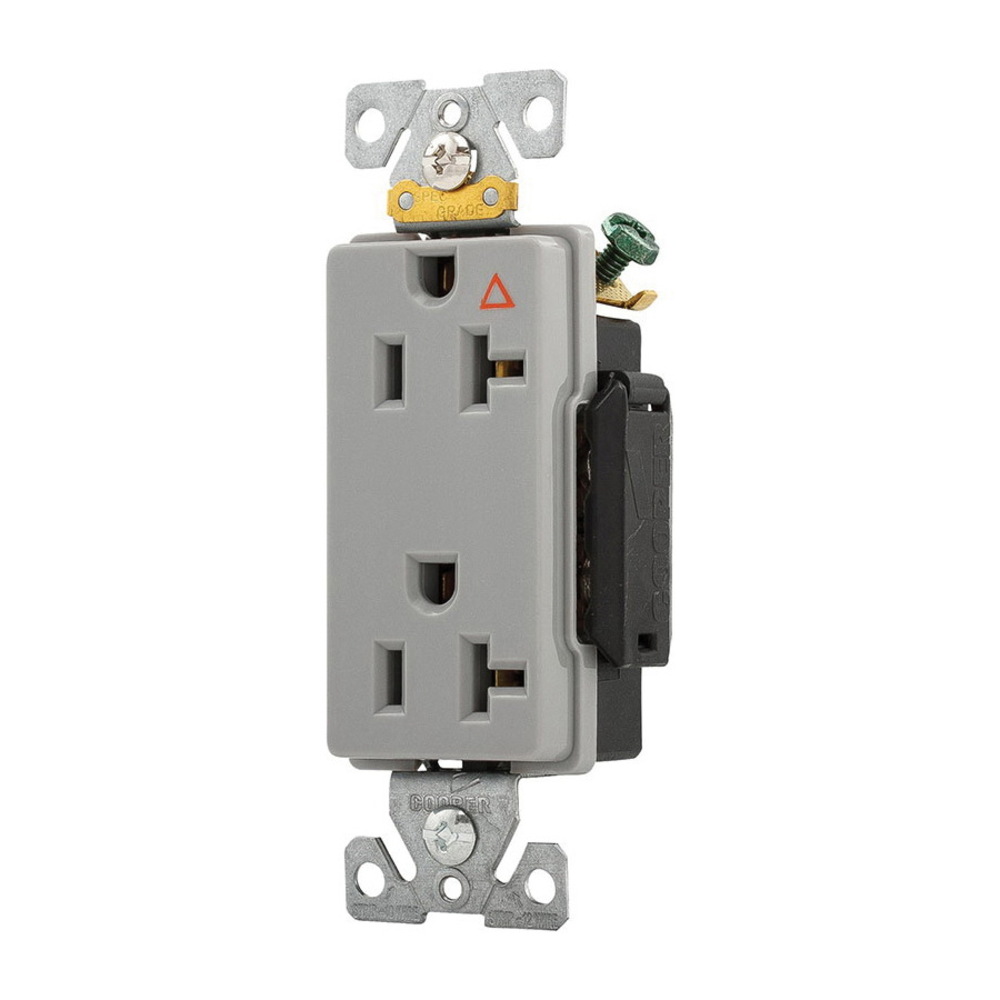 EATON Arrow Hart® IG6362GY IG6362 Decorator Isolated Ground Single Straight Blade Receptacle, 125 VAC, 20 A, 2 Poles, 3 Wires, Gray