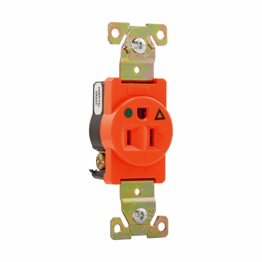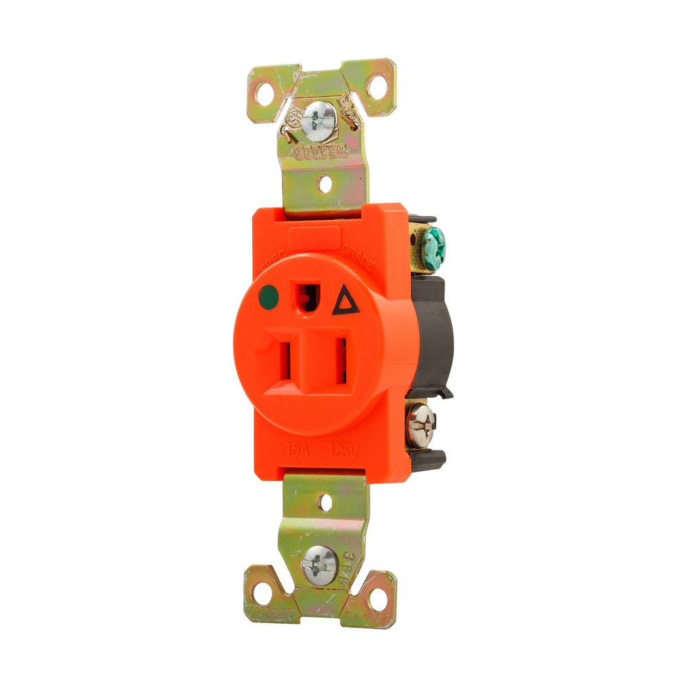 EATON IG8210RN IG8210 Isolated Grounding Straight Blade Receptacle, 125 VAC, 15 A, 2 Poles, 3 Wires, Orange