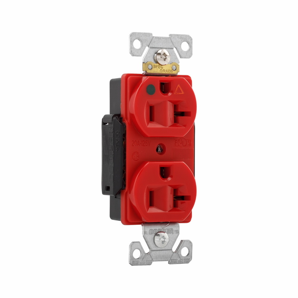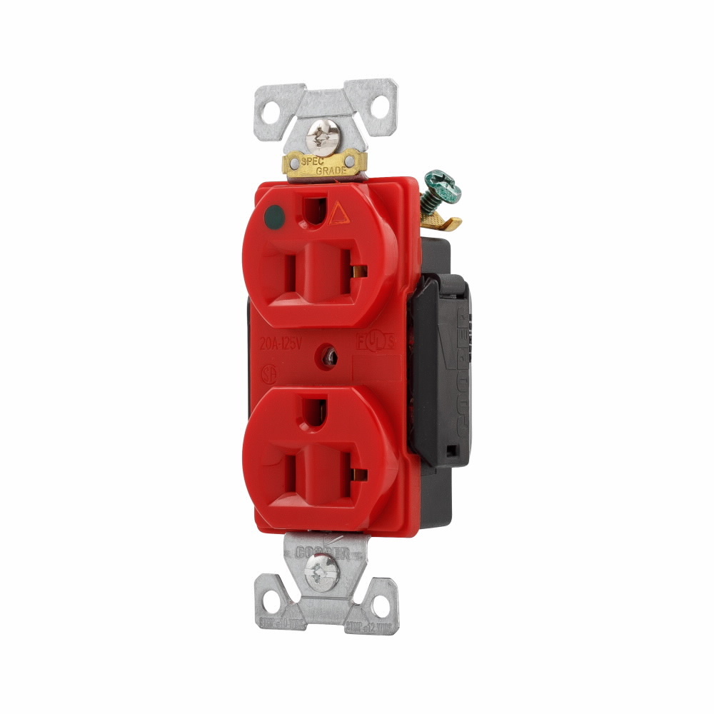 EATON Arrow Hart® IG8300RD IG8300 Duplex Isolated Ground Premium Straight Blade Receptacle, 125 VAC, 20 A, 2 Poles, 3 Wires, Red