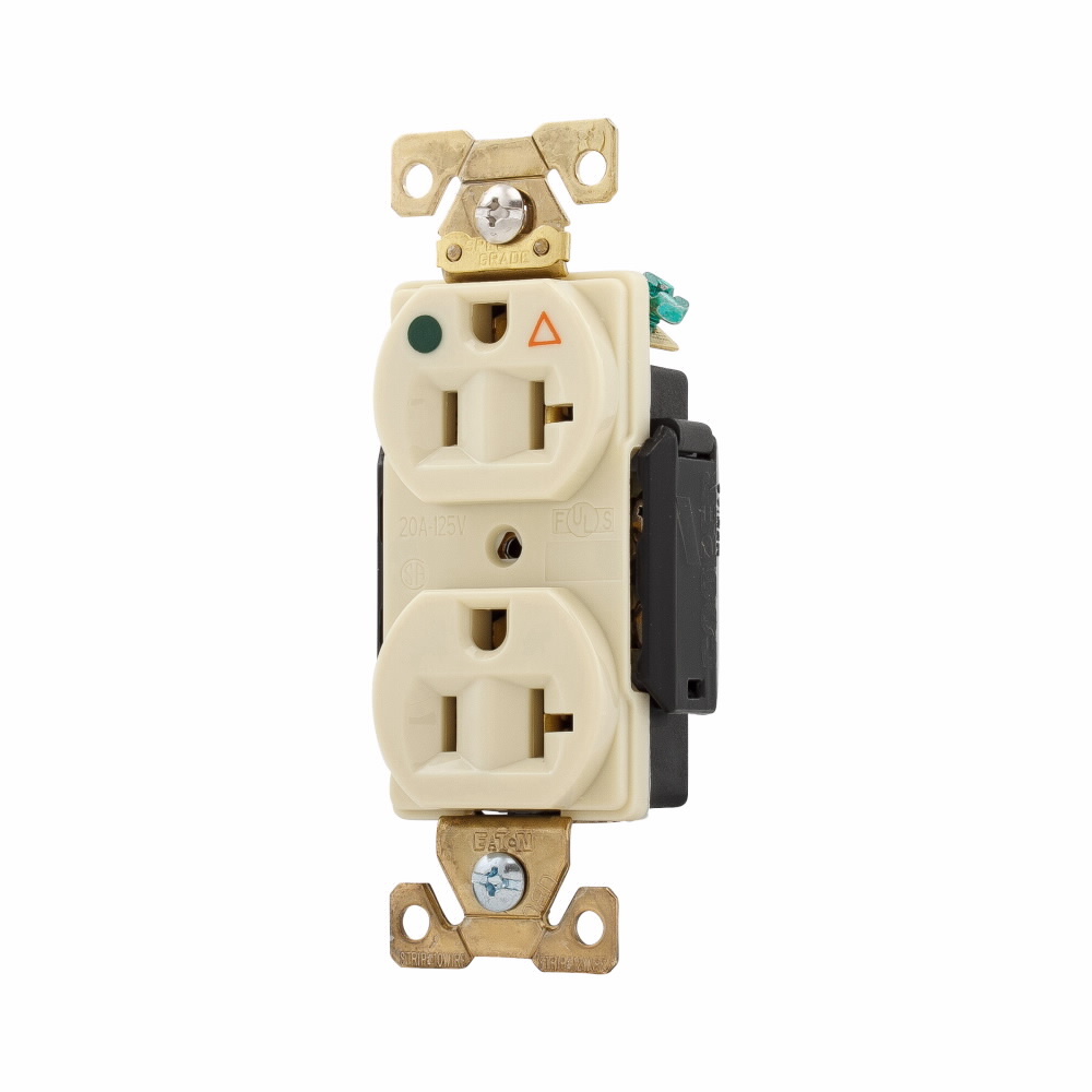 EATON Arrow Hart™ Eaton Wiring Devices IG8300V IG8300 Duplex Isolated Ground Premium Straight Blade Receptacle, 125 VAC, 20 A, 2 Poles, 3 Wires, Ivory