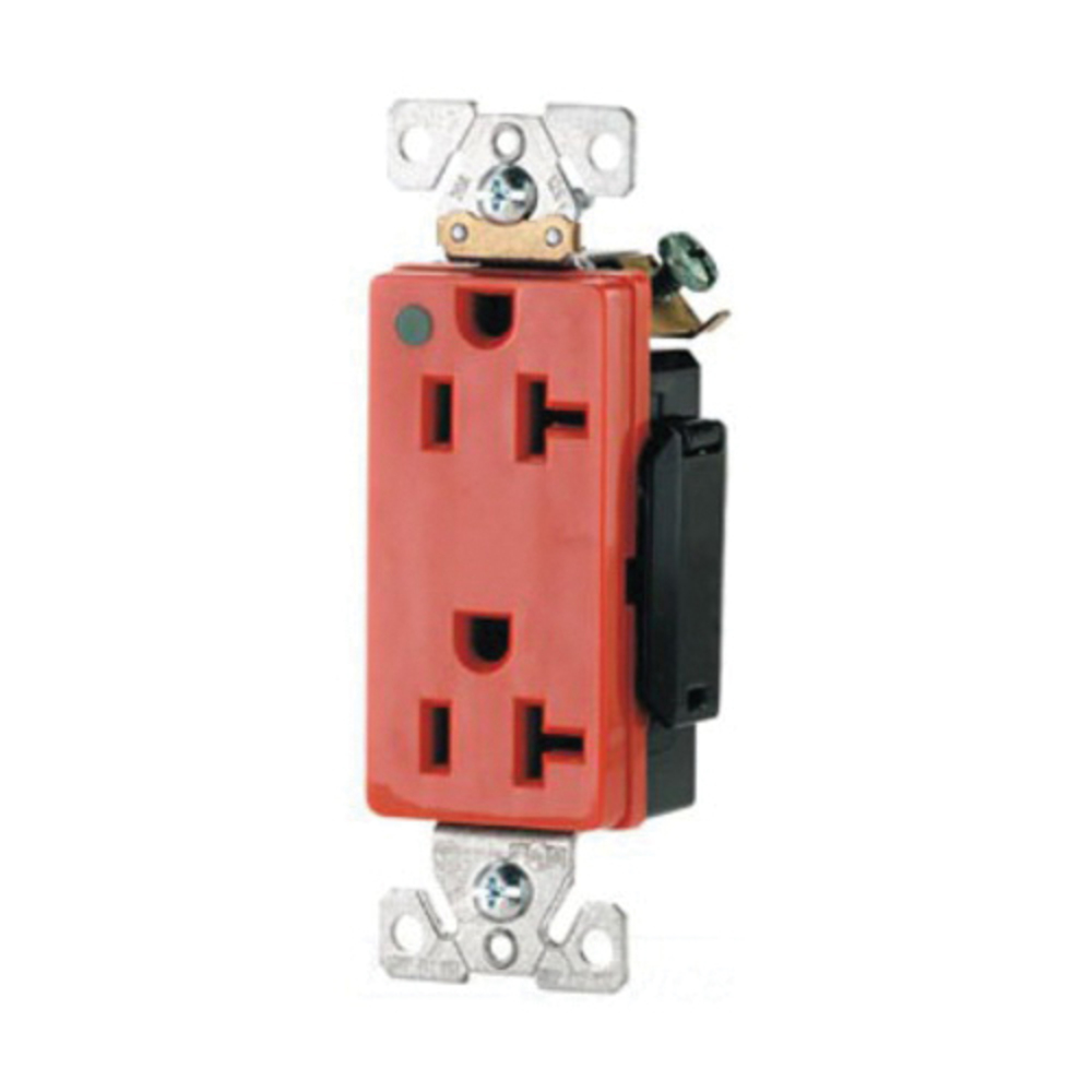 EATON Arrow Hart™ Eaton Wiring Devices IG8362RN IG8360 Decorator Duplex Isolated Ground Premium Straight Blade Receptacle, 125 VAC, 20 A, 2 Poles, 3 Wires, Orange