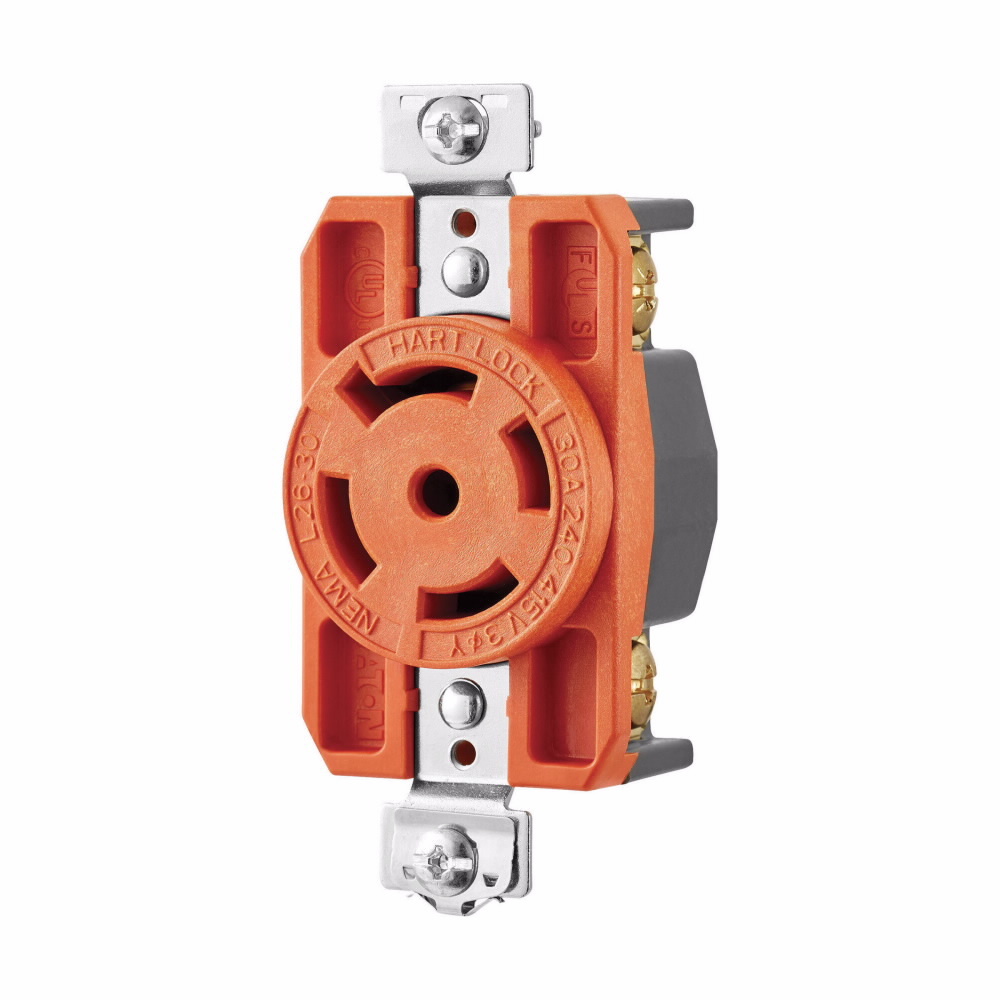 EATON Arrow Hart® Hart-Lock® IGL2630R Isolated Ground Power Lock Single Receptacle, 240/415 VAC, 30 A, 4 Poles, 5 Wires, Orange