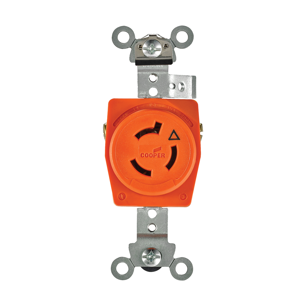 EATON Hart-Lock® IGL615R Isolated Ground Locking Receptacle, 250 V, 15 A, 2 Poles, 3 Wires, Orange